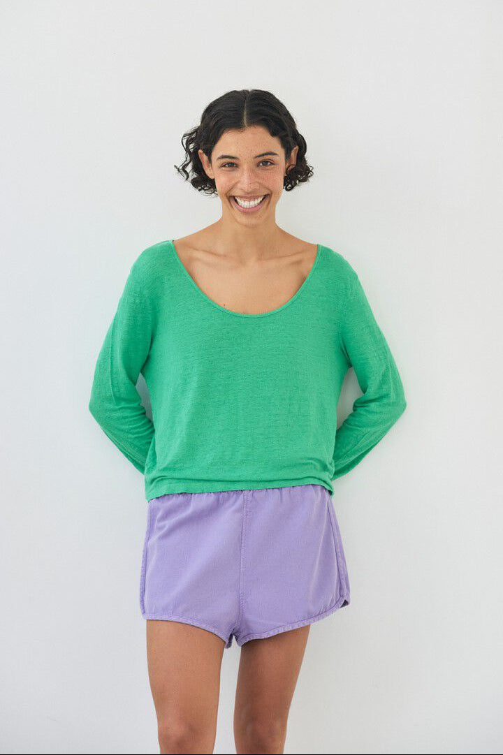 Lette Lycaz shorts fra American Vintage i farven Viola Vintage – en støvet lilla nuance. Shortsene har elastisk talje og en løs, komfortabel pasform, der gør dem perfekte til både afslapning og varme dage.