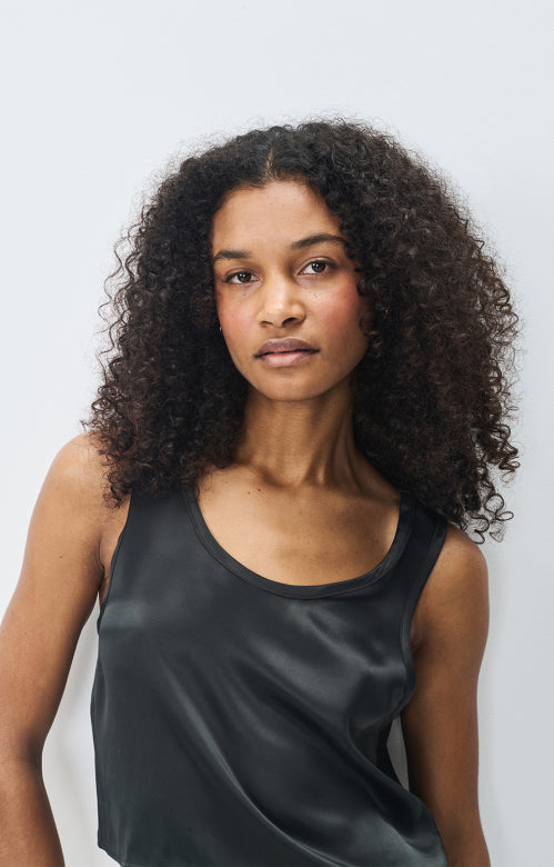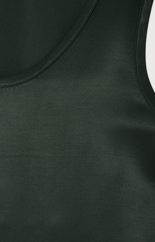 Denne cropped top fra American Vintage kombinerer et moderne snit med en blød og luksuriøs viskosekvalitet. Toppen har brede stropper og rund halsudskæring, hvilket giver et minimalistisk og feminint look.