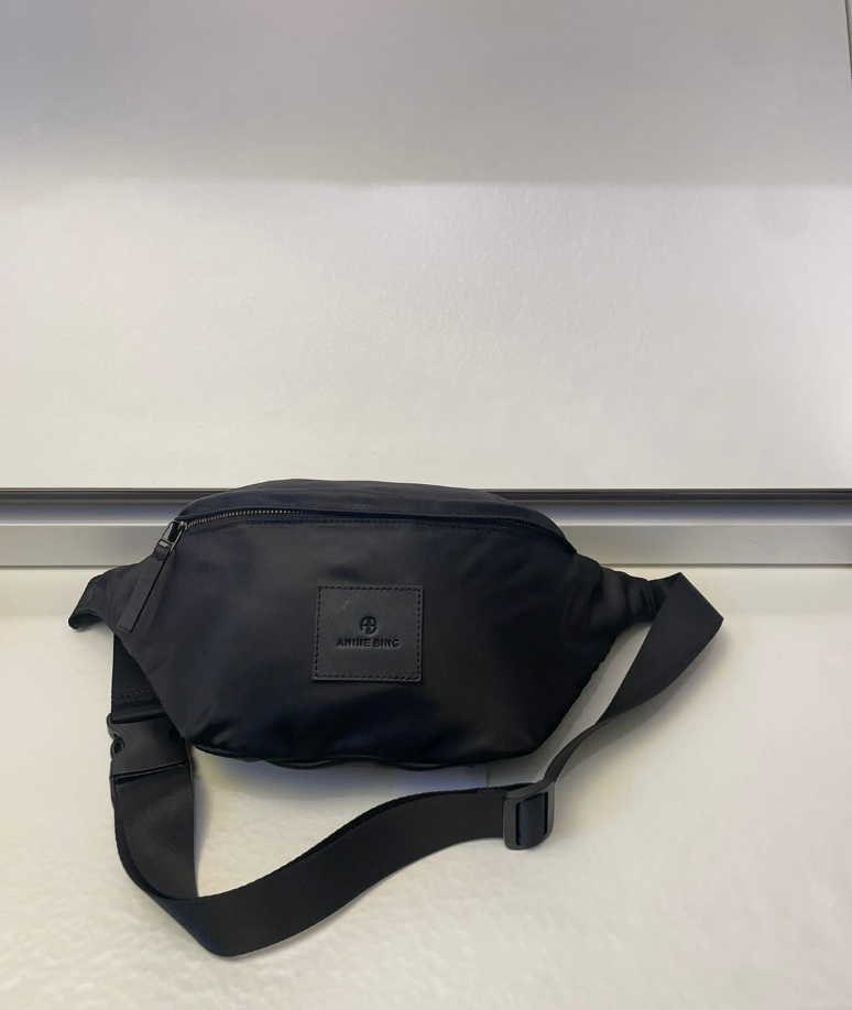 Denne mavebæltetaske fra Anine Bing kombinerer praktisk design med moderne stil. Den justerbare rem sikrer en behagelig pasform, mens det holdbare nylonmateriale gør tasken let og modstandsdygtig over for daglig brug.
