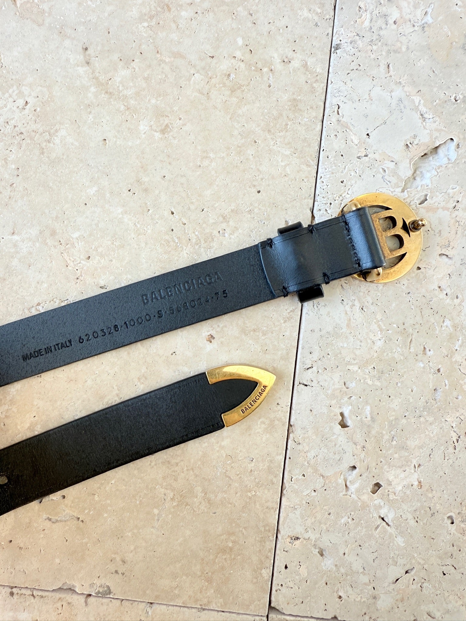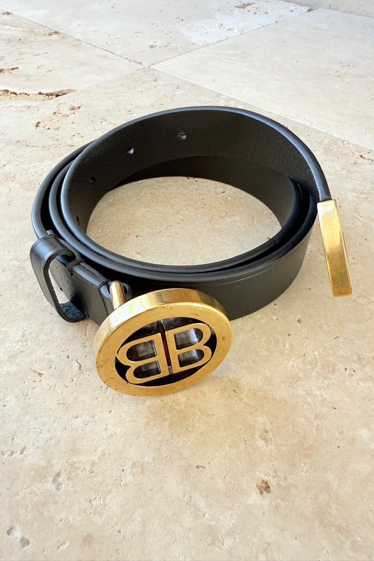 Balenciaga BB-bælte i sort læder – eksklusivt secondhand-accessory