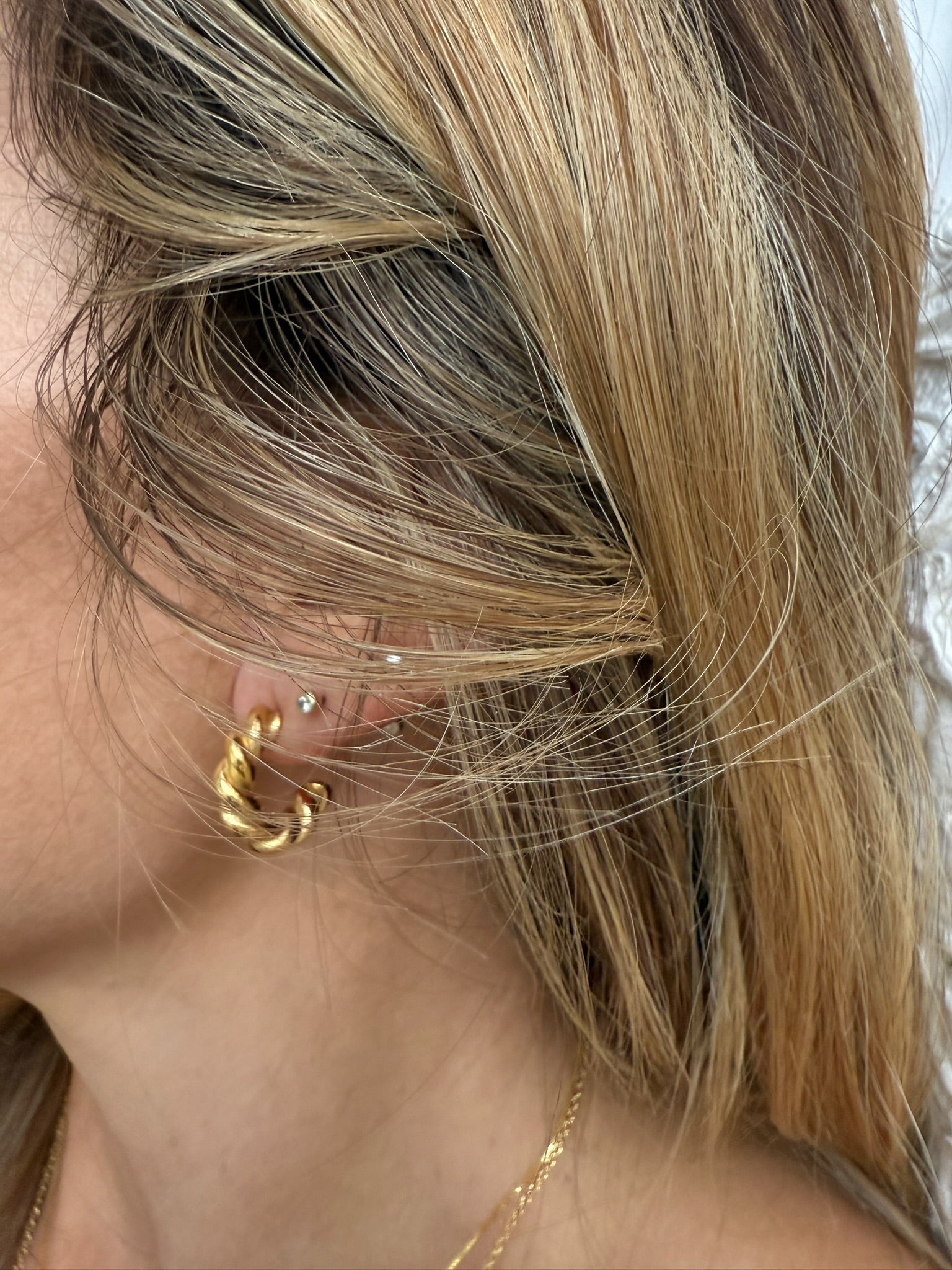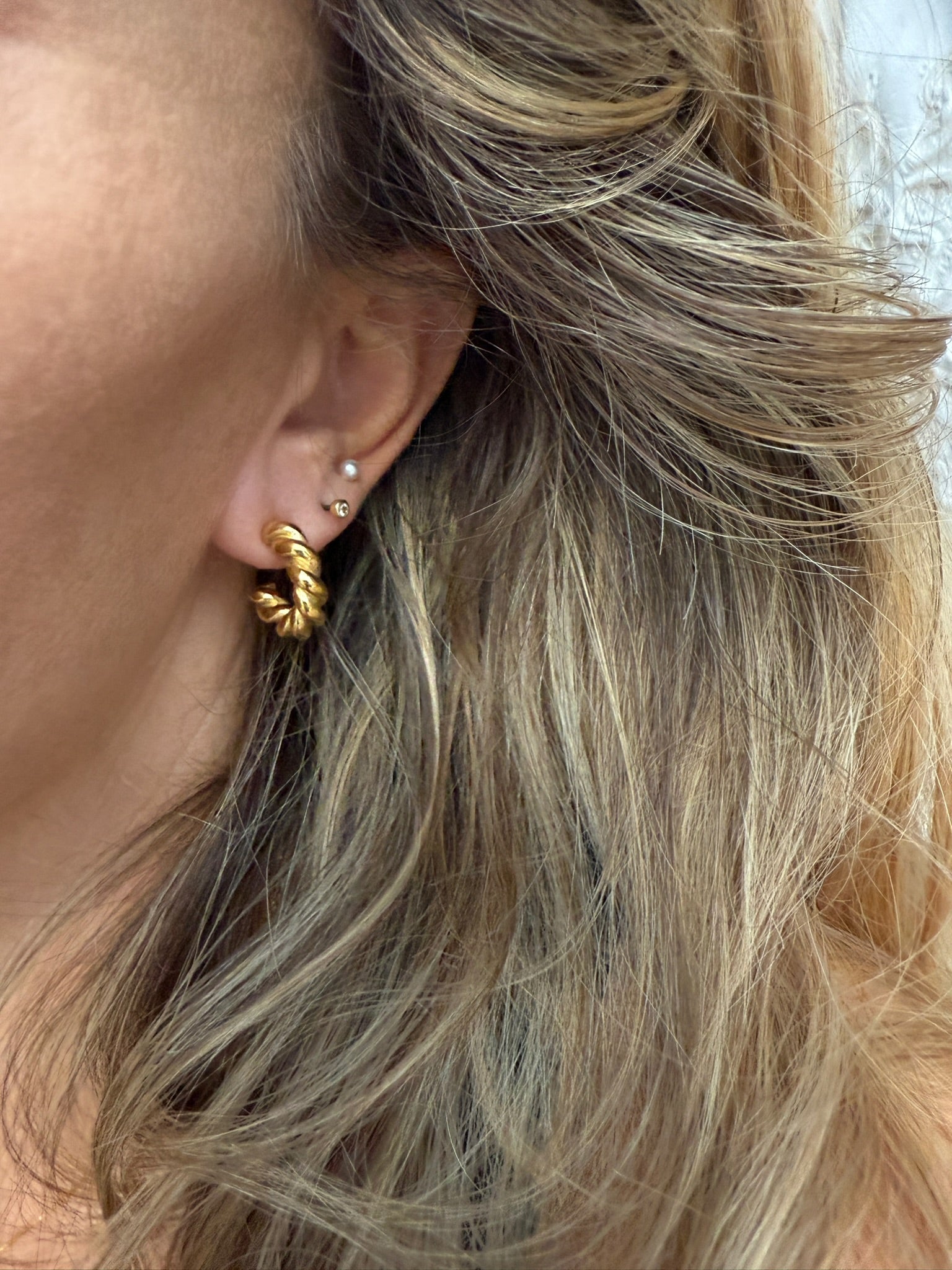 These Mila earrings from Andcopenhagen have a distinctive twisted shape. They are made with double gold plating and are 100% nickel-free and hypoallergenic, so you can wear them without worry.