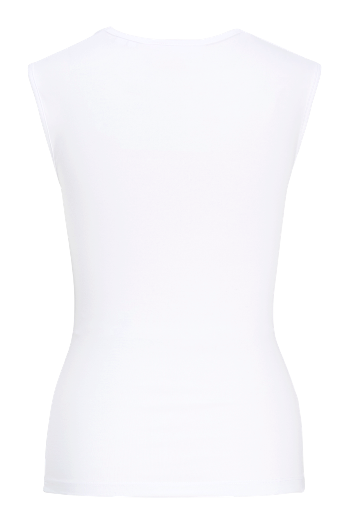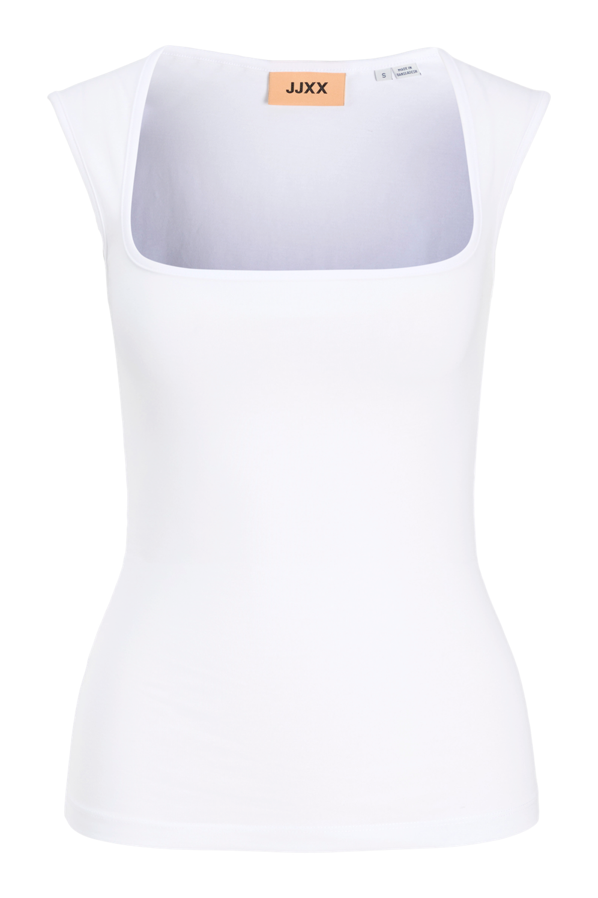 Denne top har en firkantet halsudskæring og er ærmeløs, hvilket giver et enkelt og stilrent look. Den er fremstillet i jersey, som er et let og strækbart stof, der sikrer en behagelig pasform med stretch. Toppen indeholder mindst 50% økologisk bomuld, hvilket gør den til et miljøbevidst valg.