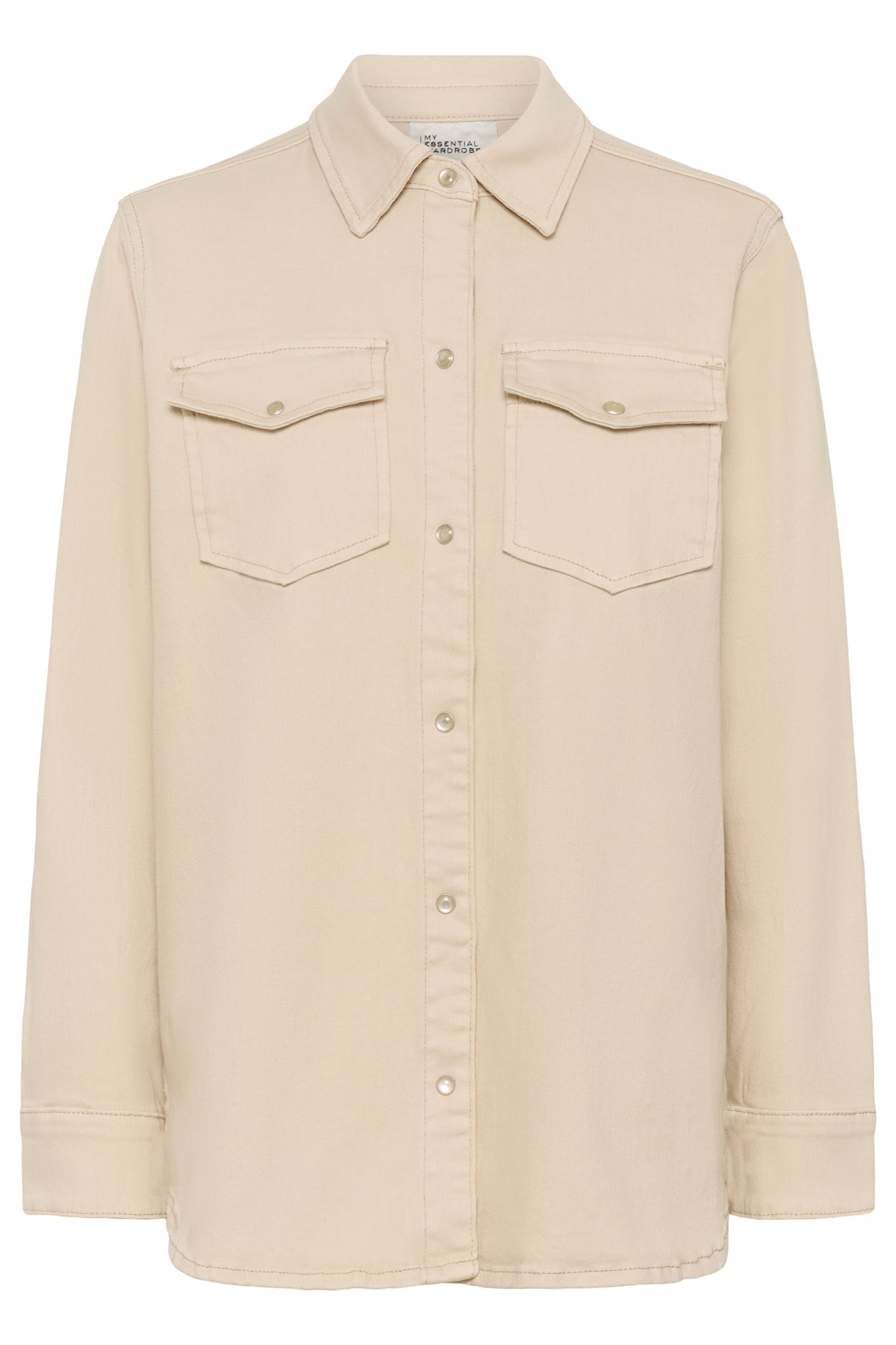 Den lyse beige nuance gør skjorten nem at style både lukket som skjorte eller åben som en let overshirt. Se flere styles fra My Essential Wardrobe