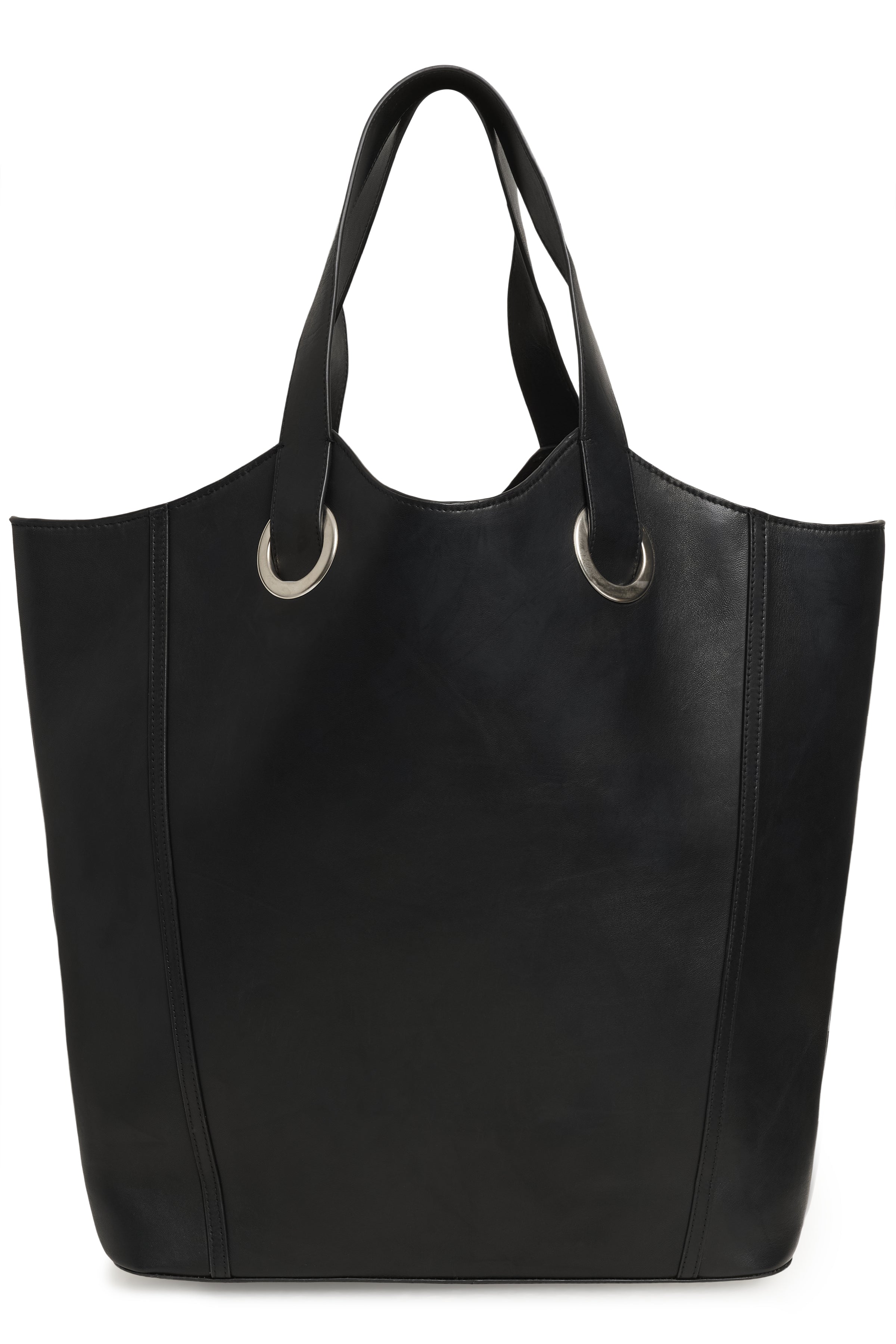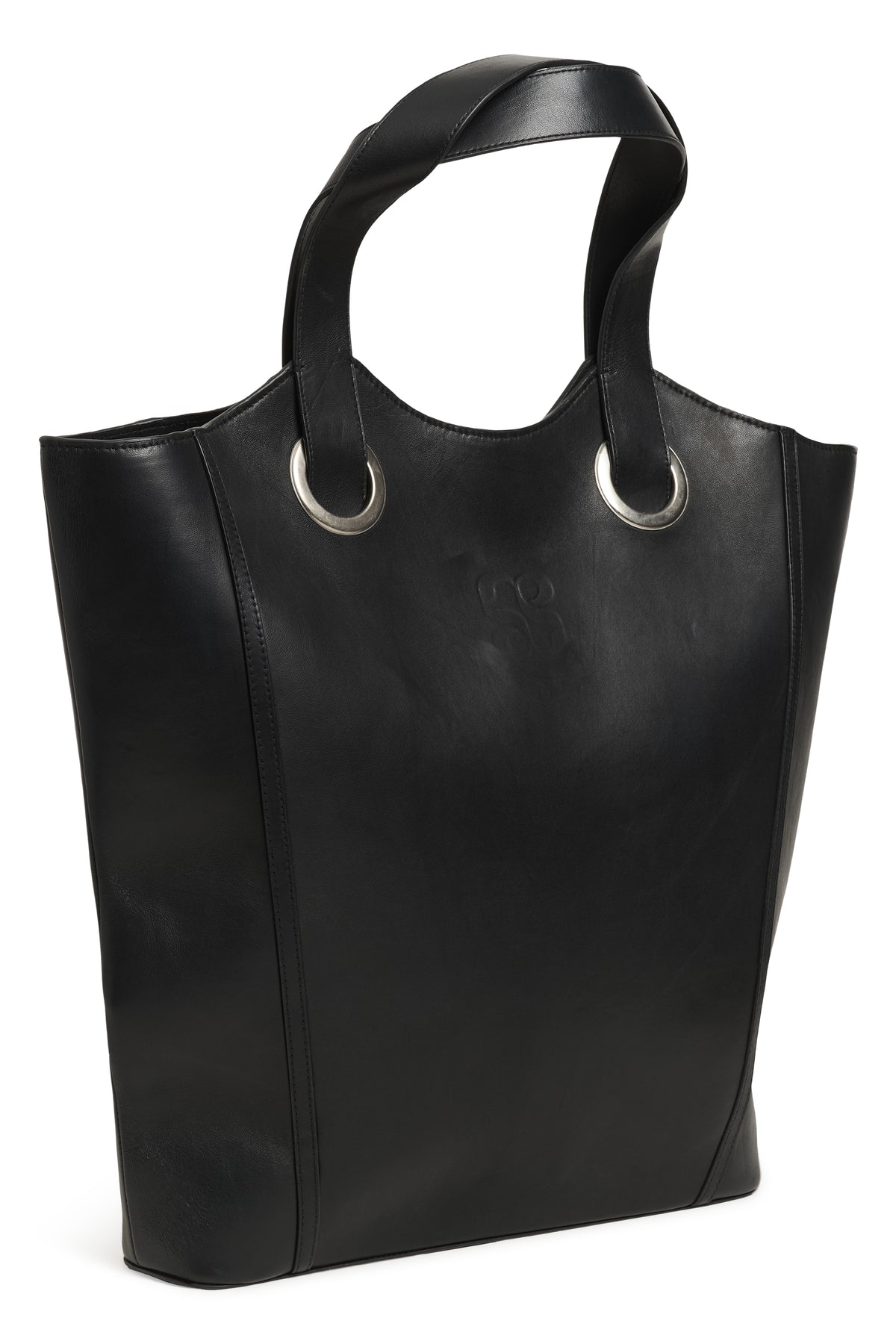 Trista er en rummelig og stilren shopper i glat, sort læder med et eksklusivt og tidløst udtryk. Tasken har en enkel, struktureret silhuet med let udvidede sider, som giver god plads til hverdagens essentials – fra laptop og dokumenter til personlige ejendele.