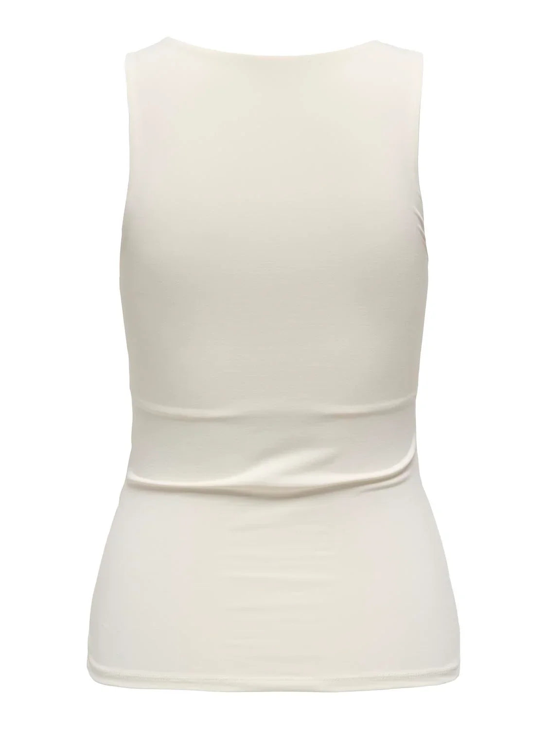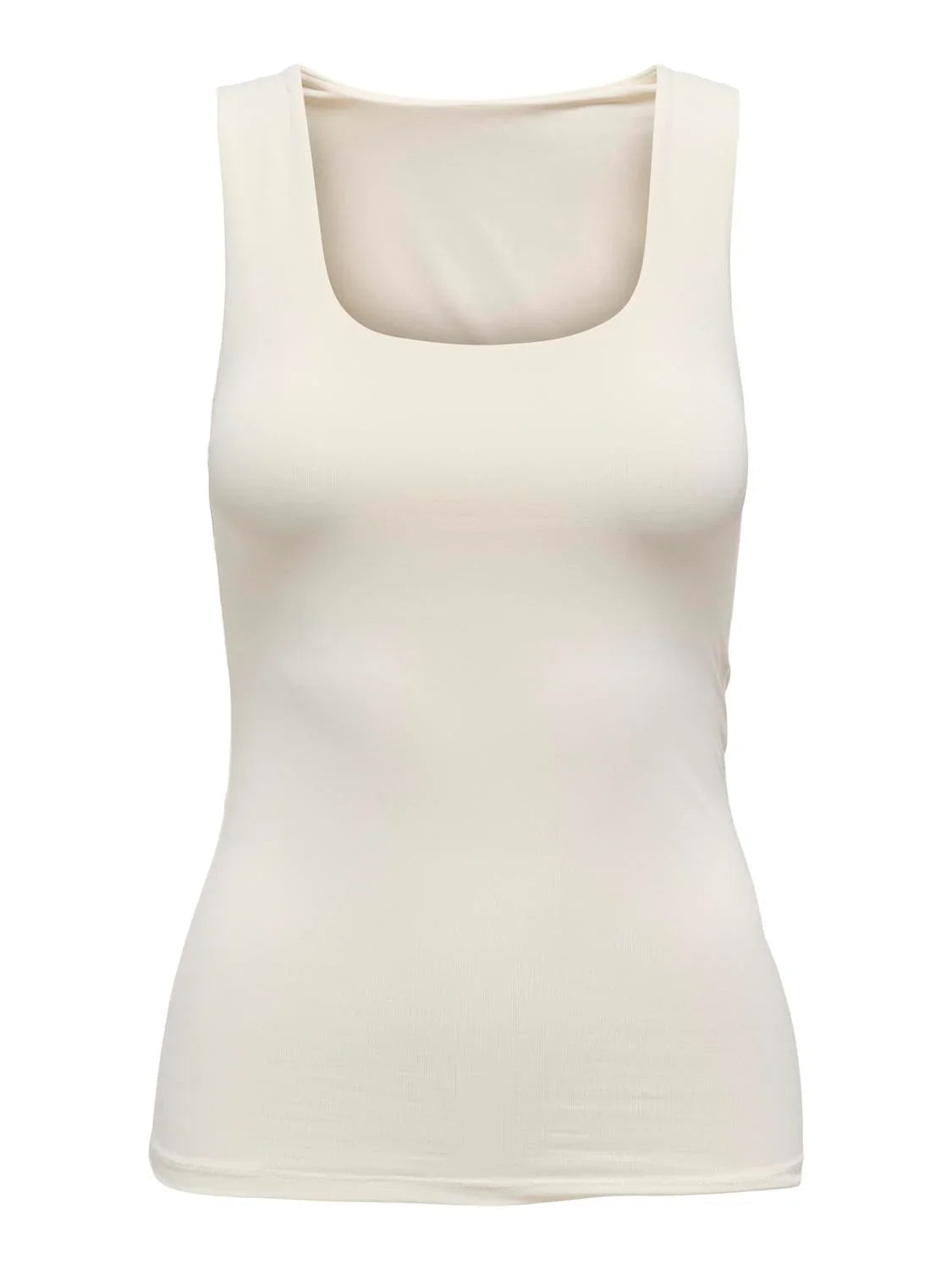 Only's Ea Two Way Strop Top in off-white is a smart solution for your wardrobe. This versatile top allows you to switch between two different styles. You can choose a deep round neckline or turn the top so that the neckline sits high at the neck. This makes it perfect for different occasions and moods. The soft and flexible fit ensures that you feel comfortable all day long.