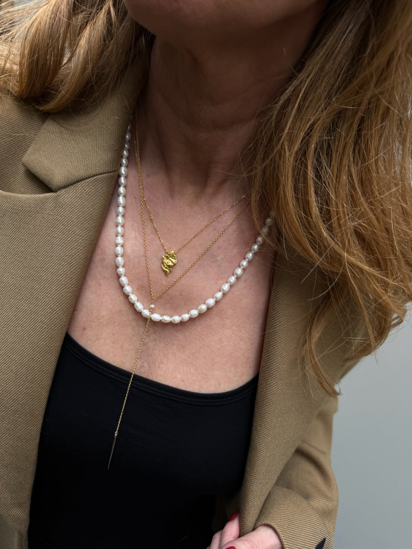 The Mona necklace from Andcopenhagen has a distinctive 2 cm pendant. It is made of 18 karat gold-plated 925 sterling silver with an adjustable length between 22 and 25.5 cm to suit different necklines.