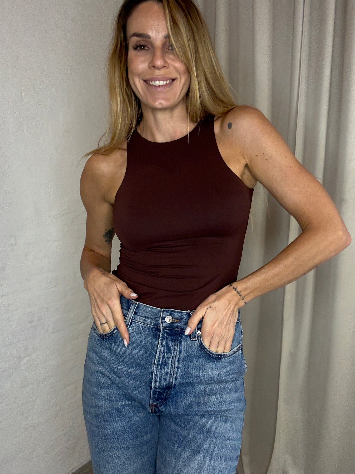 The Romy bodysuit is an obvious choice for both everyday and going-out outfits – wear it alone with a nice skirt or under a blazer for a more sophisticated look. The warm brown color also makes it easy to combine with both neutral and colorful styles.