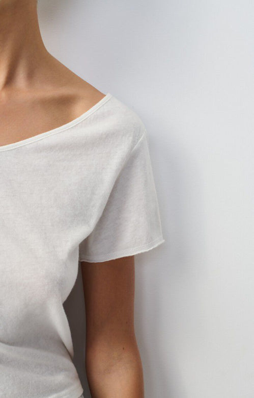 Aksun t‑shirten fra American Vintage er en klassisk hvid t‑shirt, der fungerer som en tidløs og blød basis i enhver garderobe. Den har en elegant V‑udskæring og korte ærmer, som giver et stilrent og alligevel afslappet udtryk.