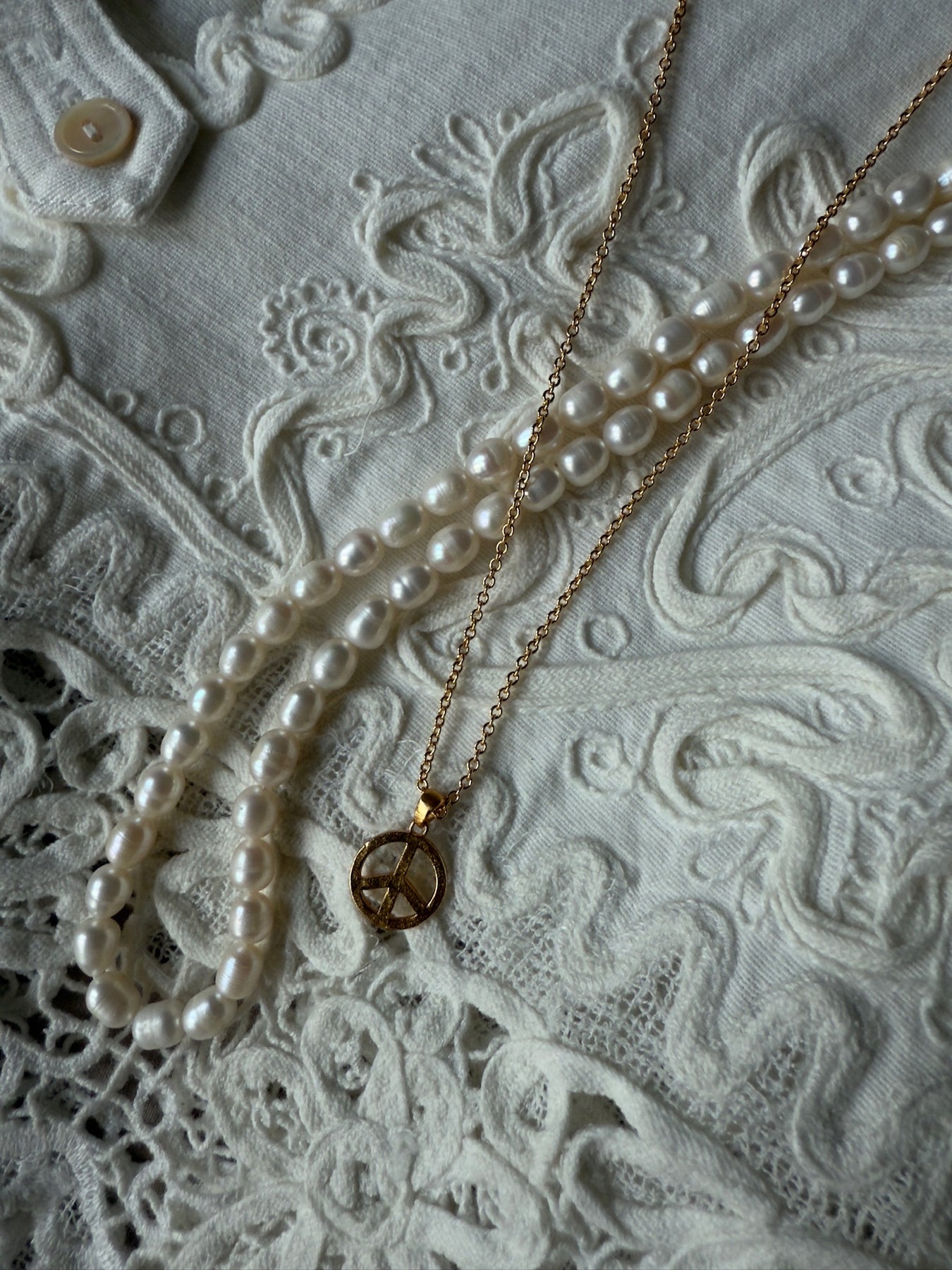 Andcopenhagen halskæde med det karakteristiske peace-symbol som vedhæng. Den justerbare kæde giver dig frihed til at style den efter dit outfit. Et statement-piece, der lader dig udtrykke dine værdier gennem dit look.