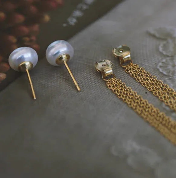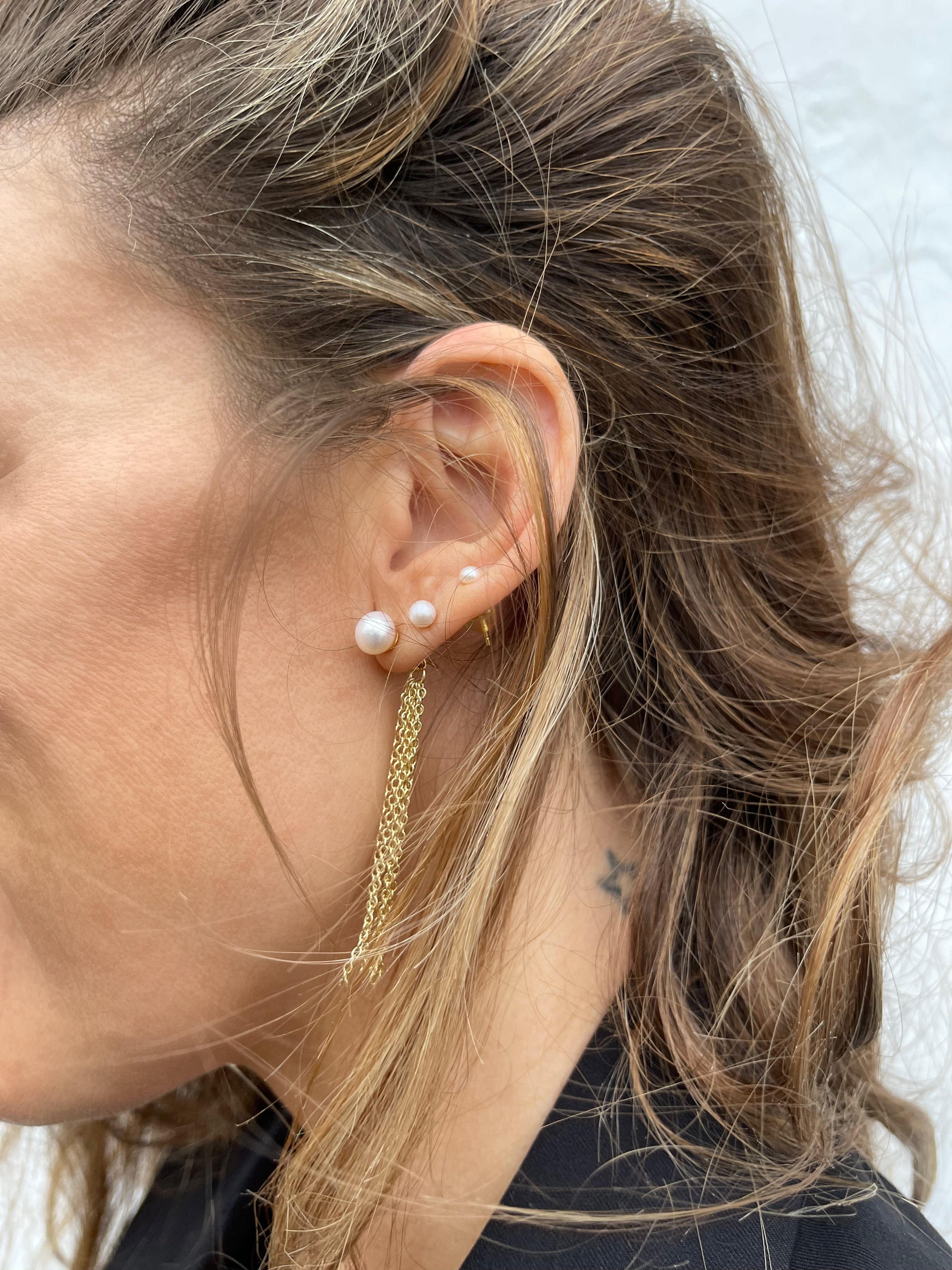 Charlotte Pearl chain-øreringe fra Andcopenhagen kombinerer perler med kædedetaljer i et tætsiddende design. De sidder tæt på øret og er nemme at style til både hverdag og fest. Undgå kontakt med fugt for at bevare finishen.