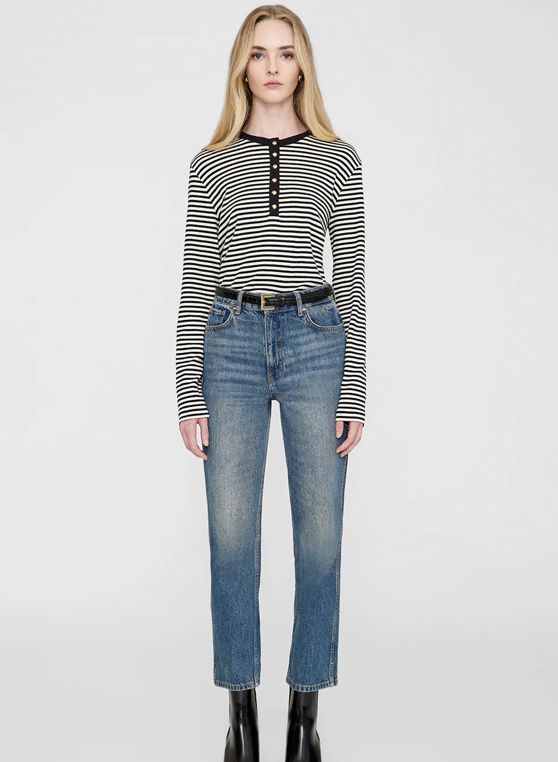 Anine Bing Alessia Long Sleeve Tee Cream And Black Stripe