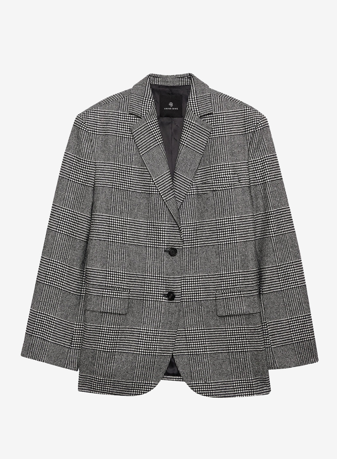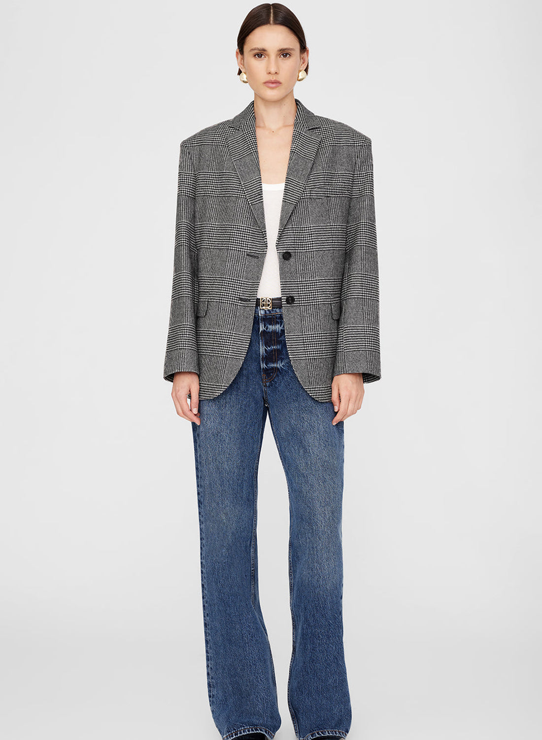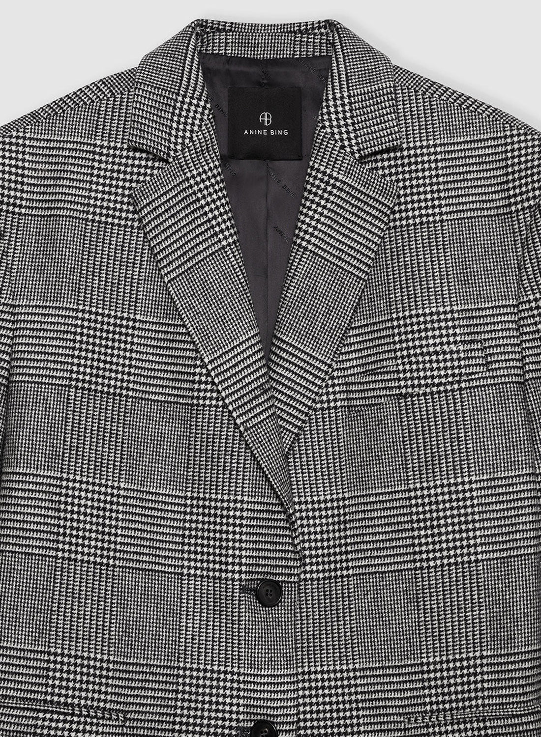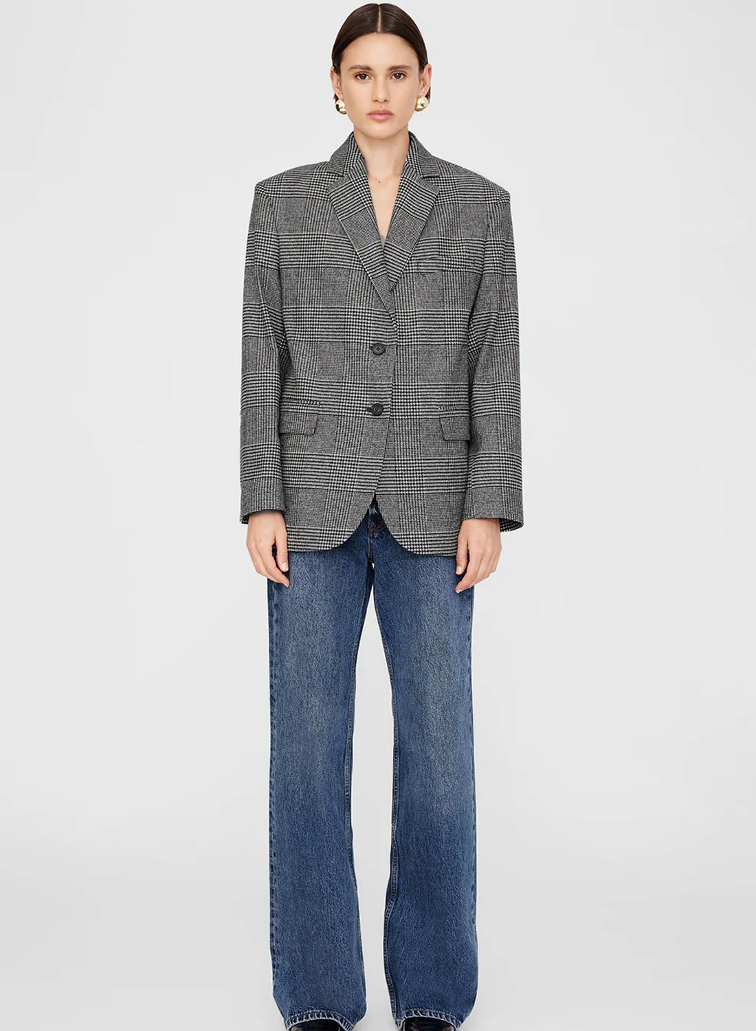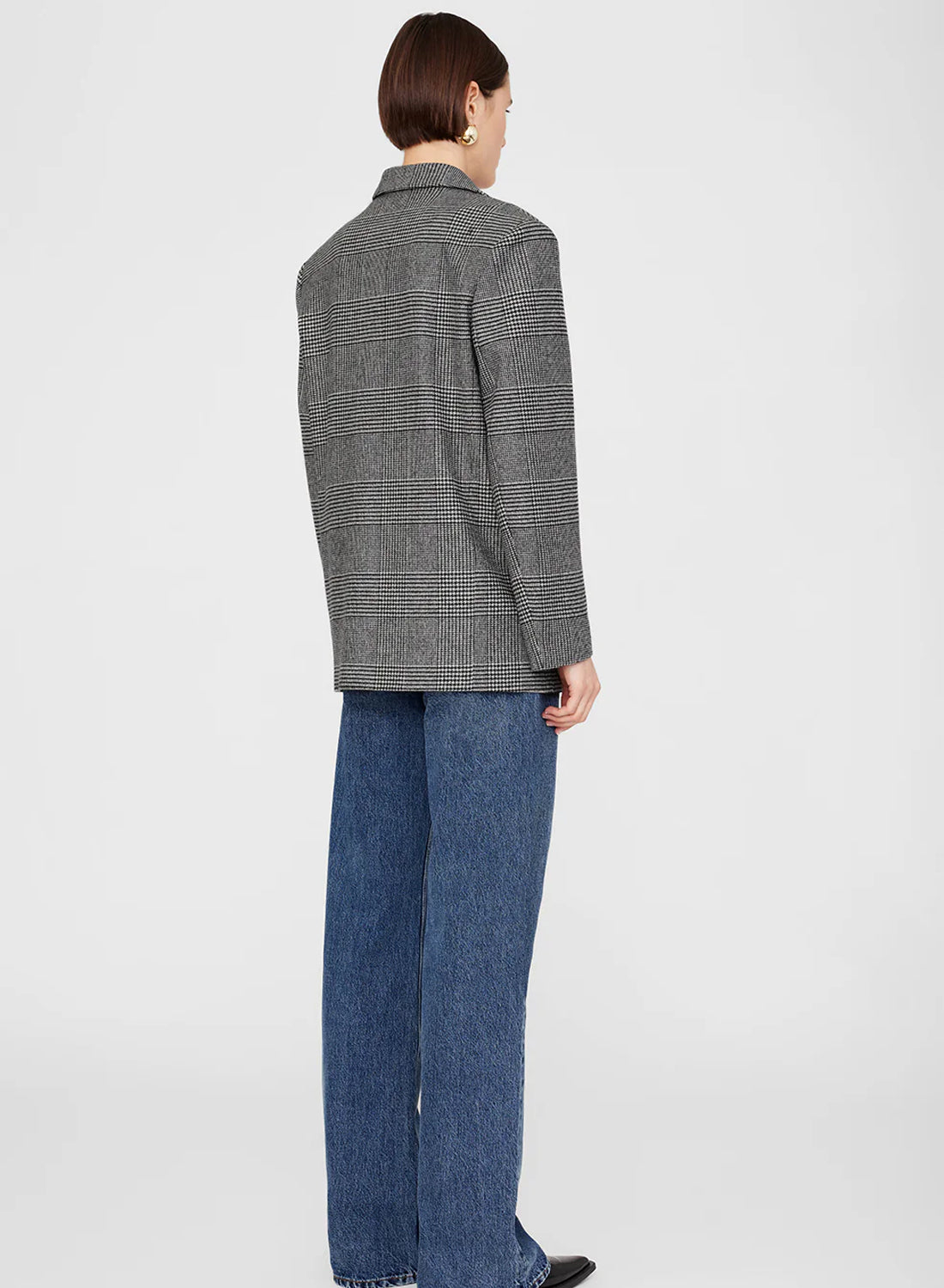 Anine Bing Quinn Blazer Black And Grey Plaid