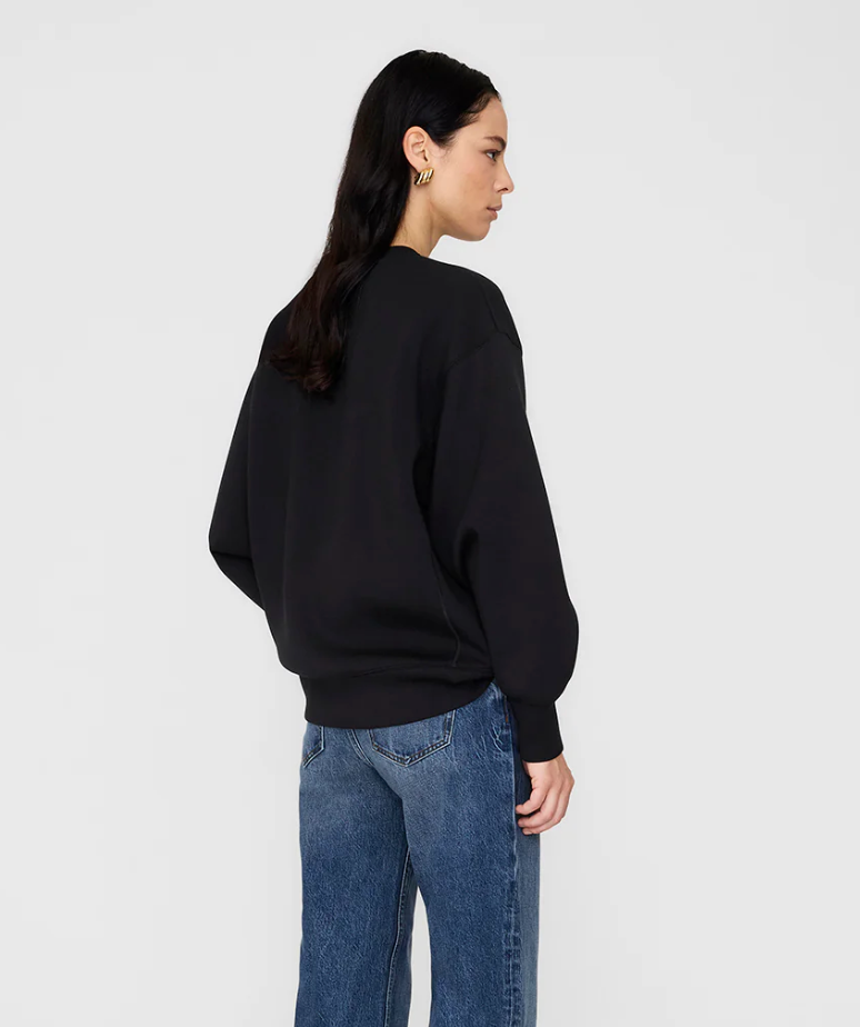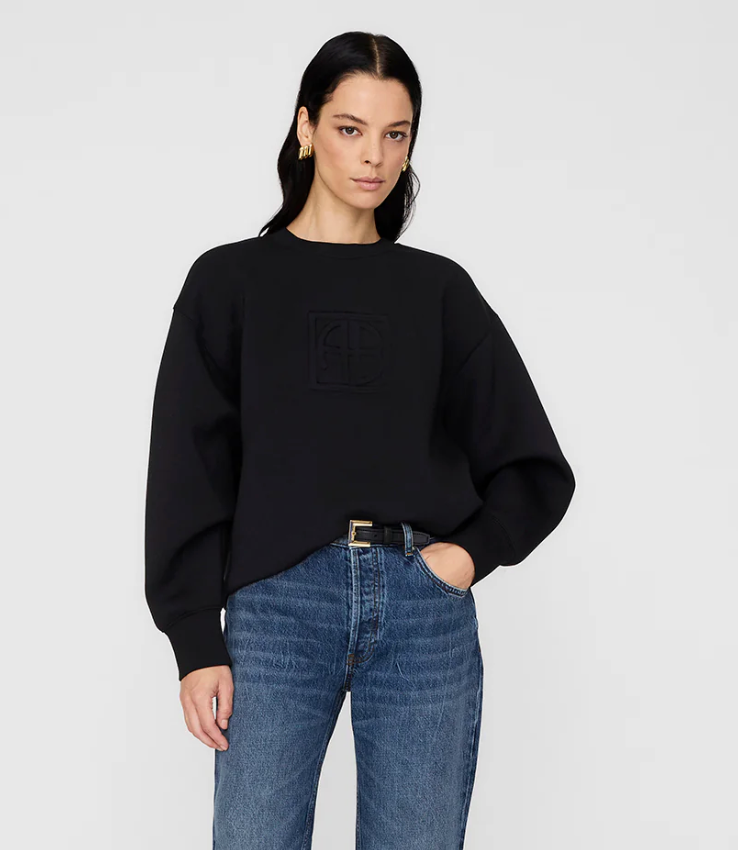 Denne Alto sweatshirt fra Anine Bing har en afslappet, oversized pasform i kraftig scuba-blanding. Det diskrete, prægede monogram tilfører et sofistikeret touch, der gør den let at style til cafébesøg og hverdagsbrug.
