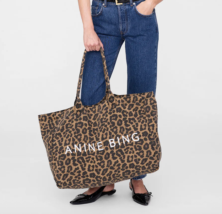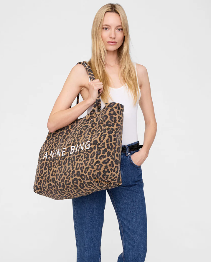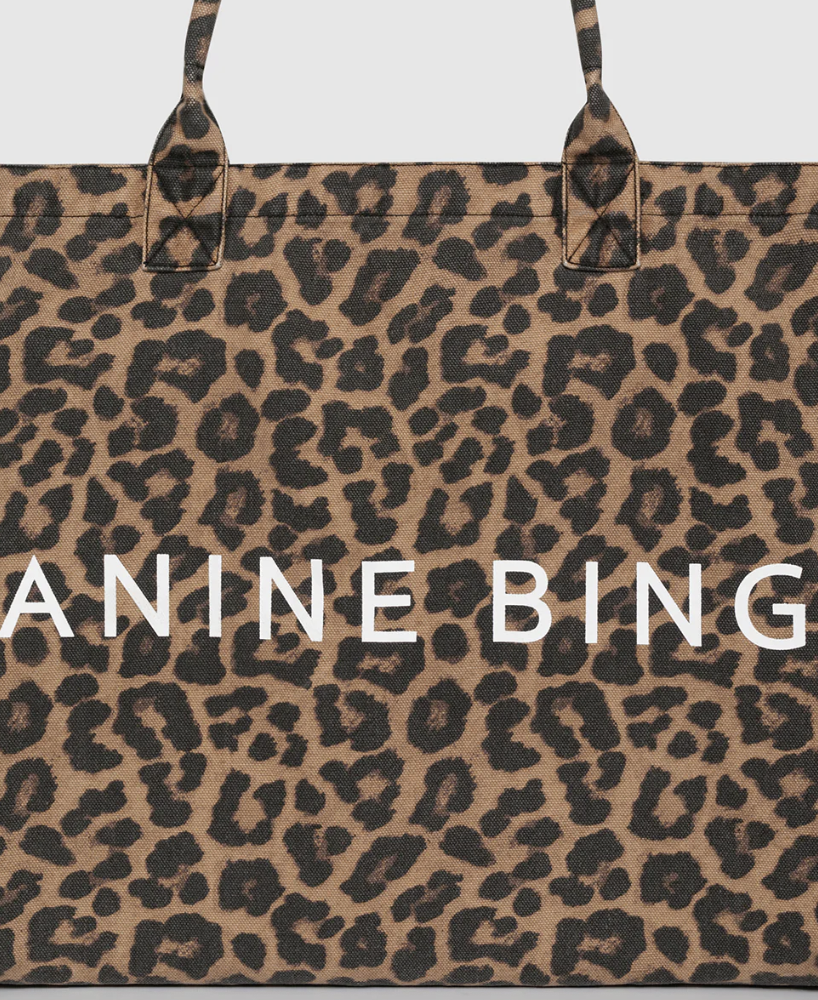 Rummelig tote bag i 100 % bomuld med sort og brunt leopardprint. Det hvide ANINE BING-logo i screenprint giver tasken et karakteristisk udtryk. Med målene 46 x 50 cm har du god plads til dagens fornødenheder.