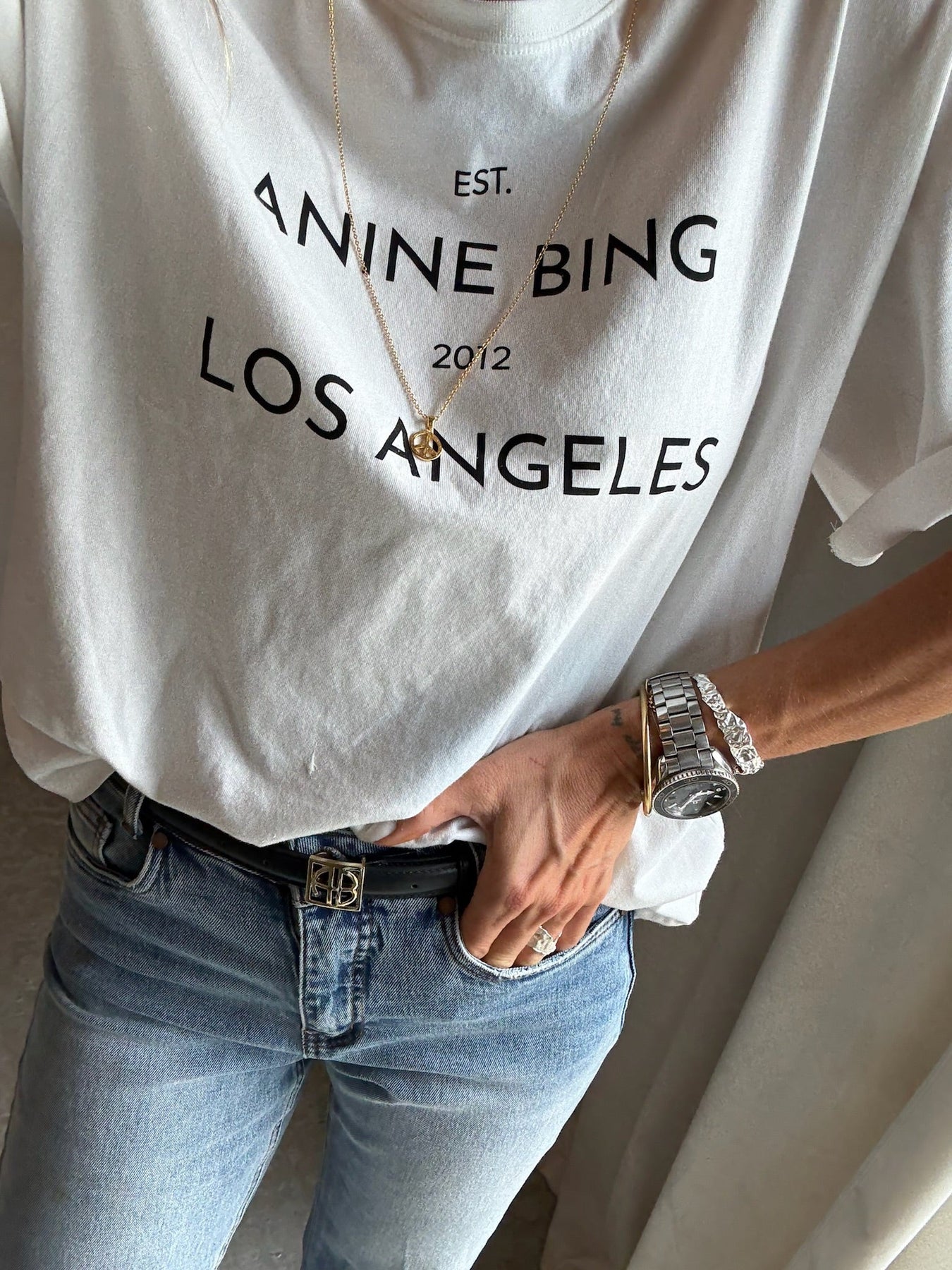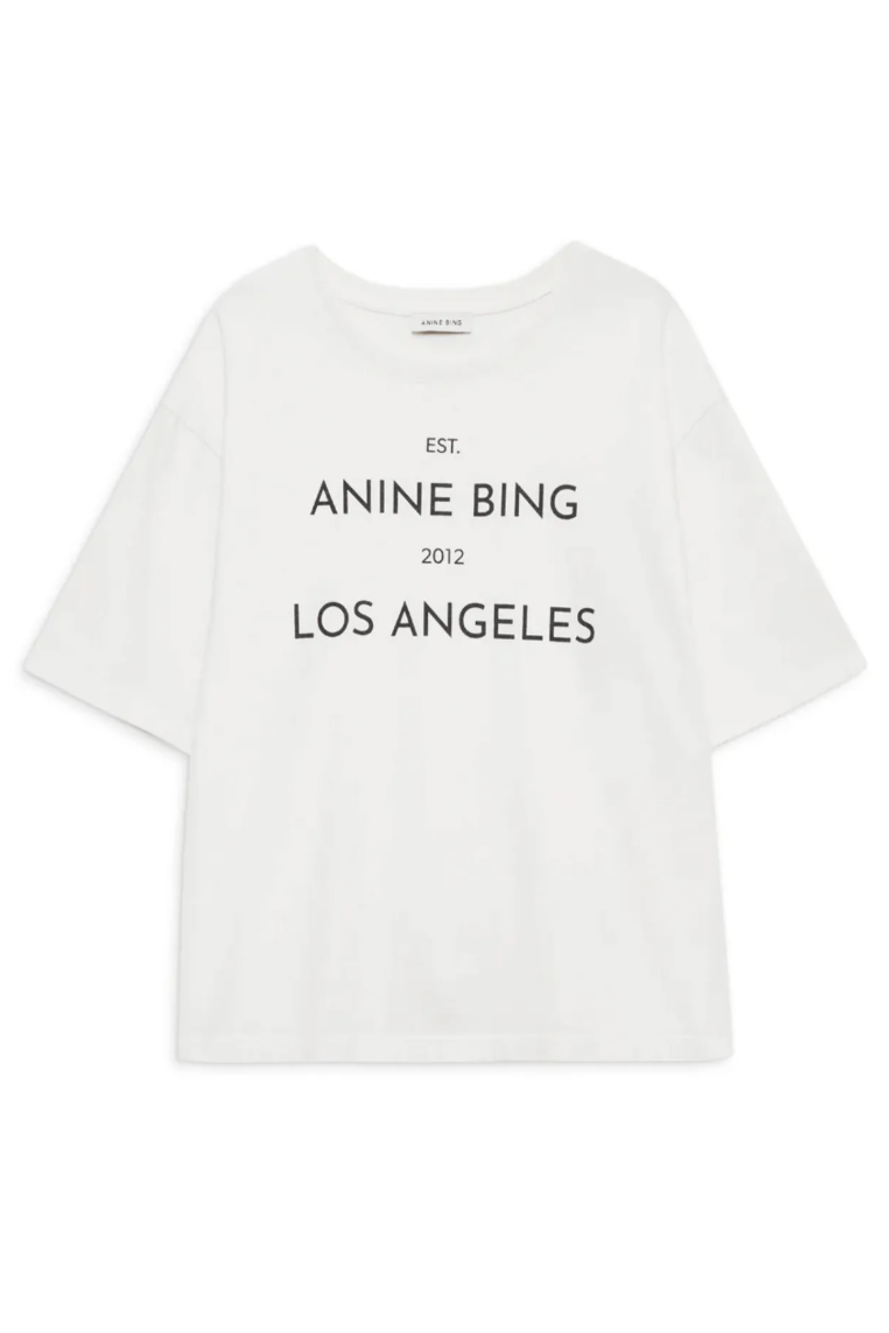 Rudy t-shirt er lavet af et let jersey-stof i en ivory vask. Tshirten har et længere ærme og Anine Bing logo foran. Derudover er den løs i pasformen og har en rund halsudskæring.
