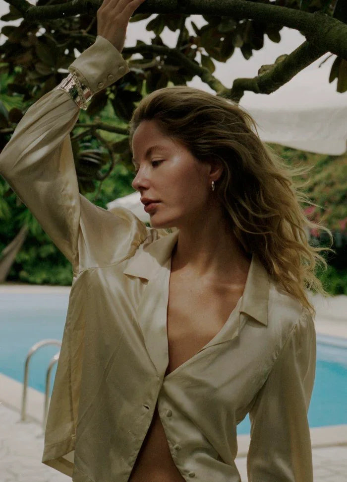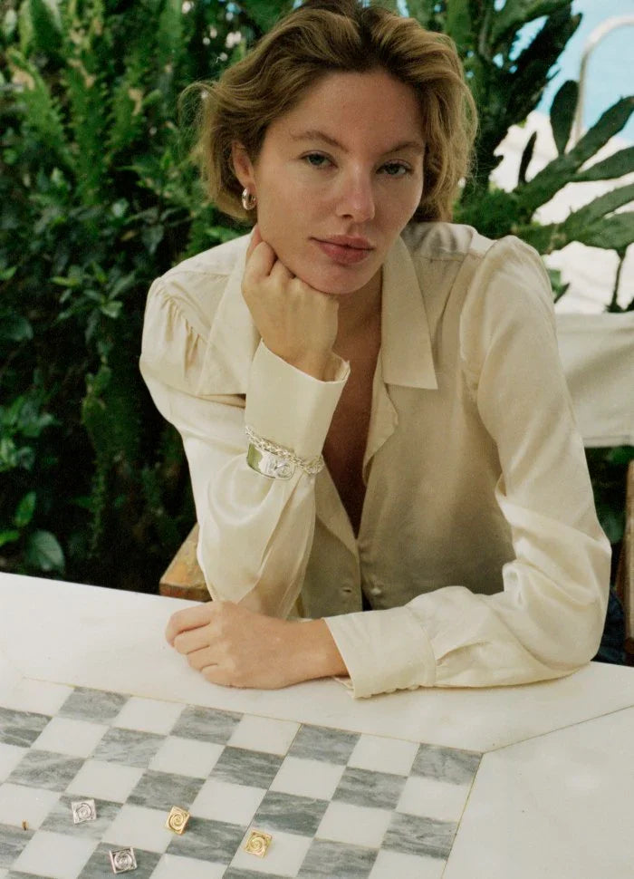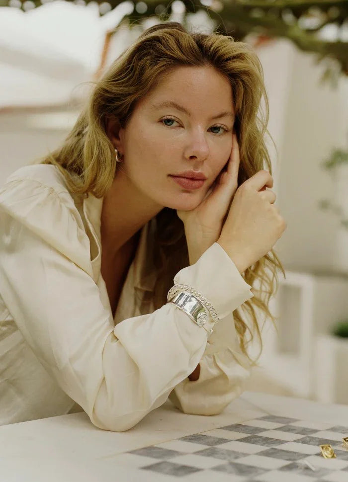 Selvom armbåndet har en smallere diameter, bevarer det den samme chunky, dekadente og markante fornemmelse. Brug det alene for et cool 70’er-inspireret look, eller miks det med farverige armbånd og skab dit helt personlige udtryk.