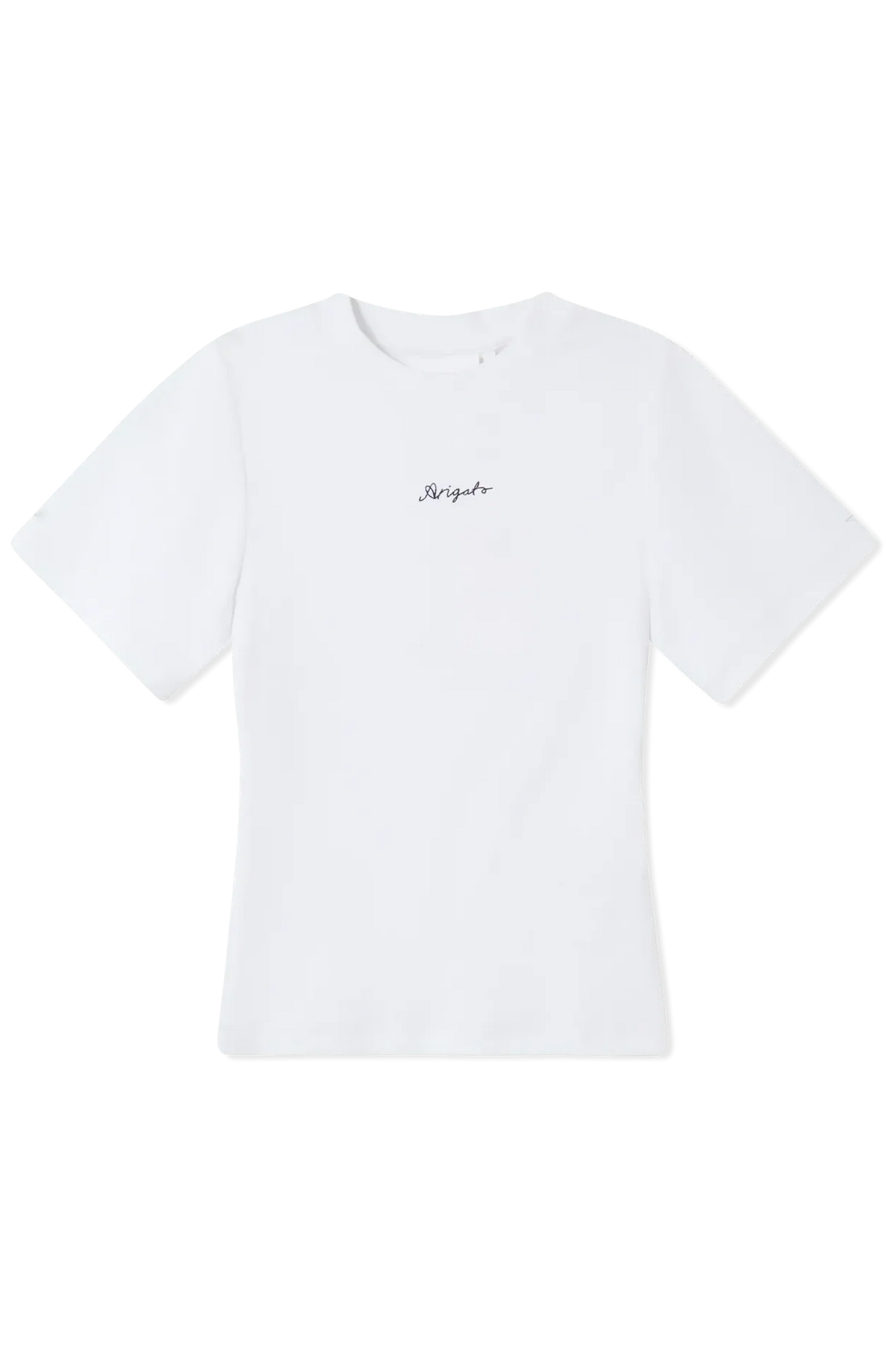 T-shirten fra Axel Arigato har en slank silhuet med strækegenskaber, der gør den ideel til afslappede dage udendørs. Den runde halsudskæring og de korte ærmer suppleres af et broderet Arigato-logo på forsiden.