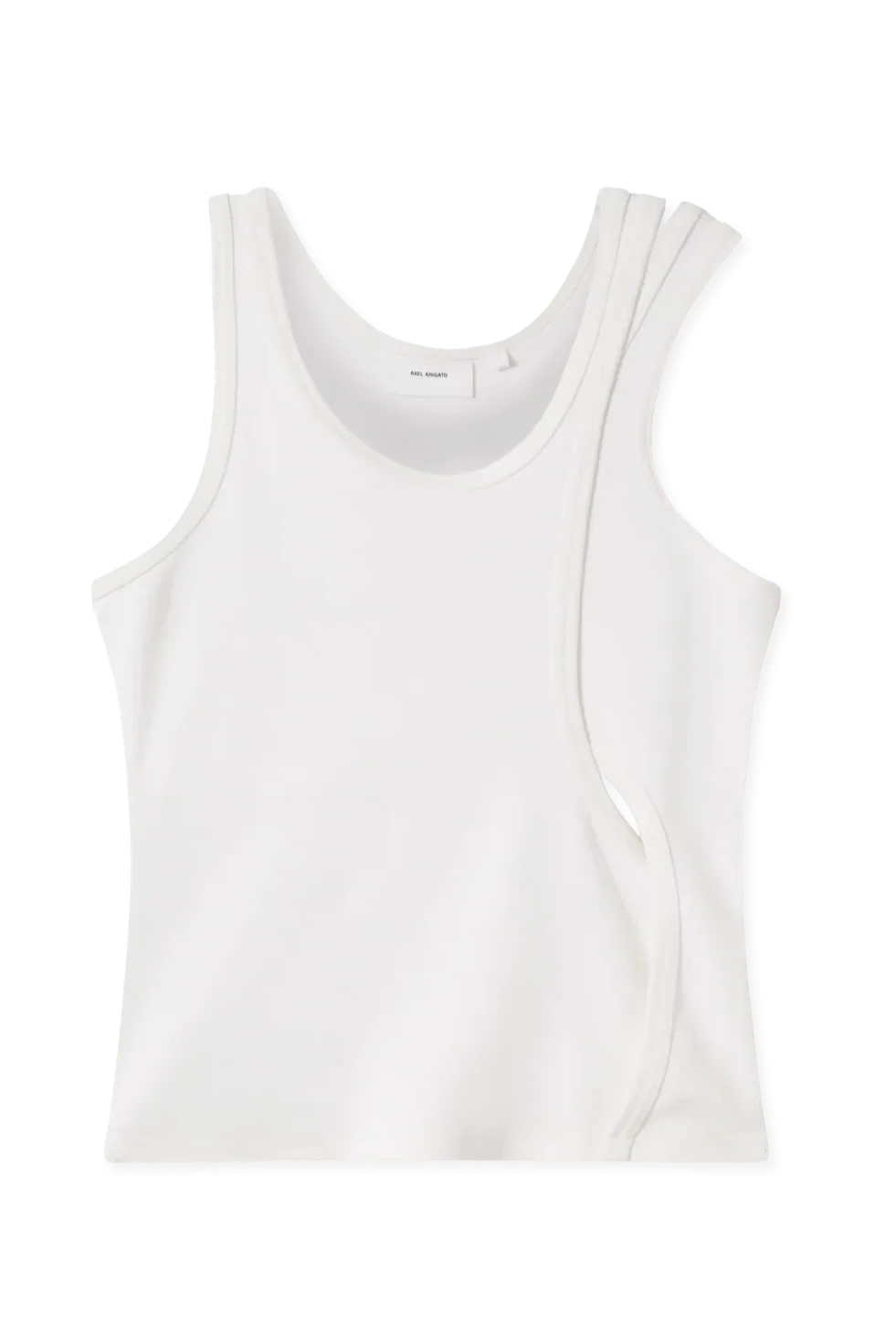 Denne hvide tanktop fra Axel Arigato har en særlig lagdelt konstruktion på skulderen, der skaber en moderne silhuet. Det diskrete Arigato-broderi giver et subtilt kvalitetspræg til det rene design.