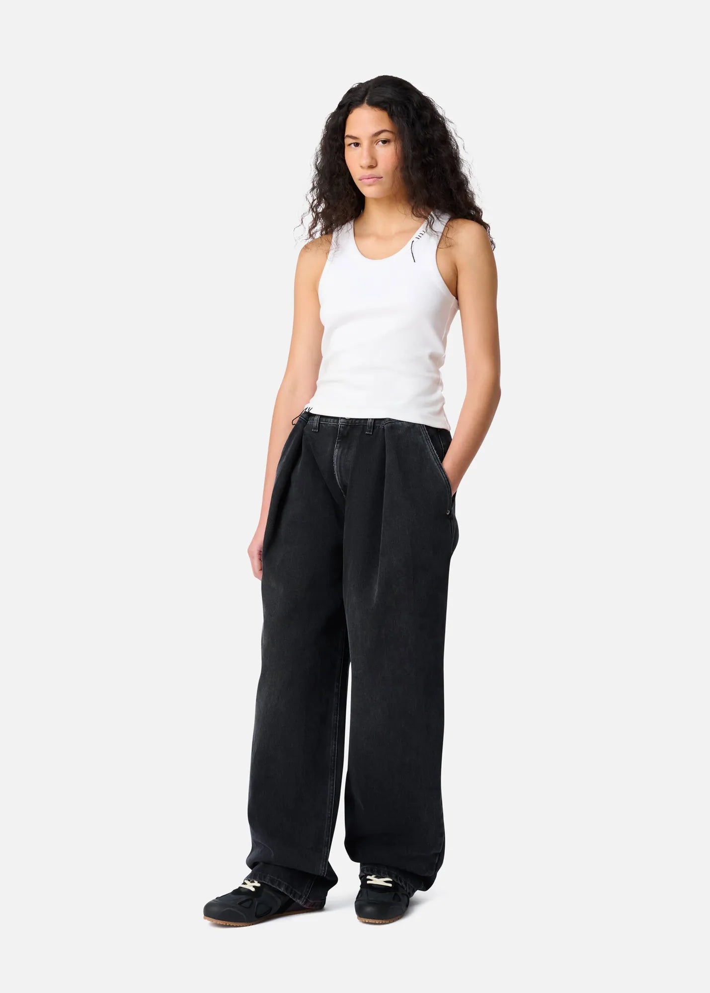 Denne top fra Axel Arigato har en slank silhuet med rund halsudskæring. De håndlavede løkkesyninger ved halsen og bunden giver et særligt præg, mens materialevalget sikrer høj åndbarhed til byture og shopping.