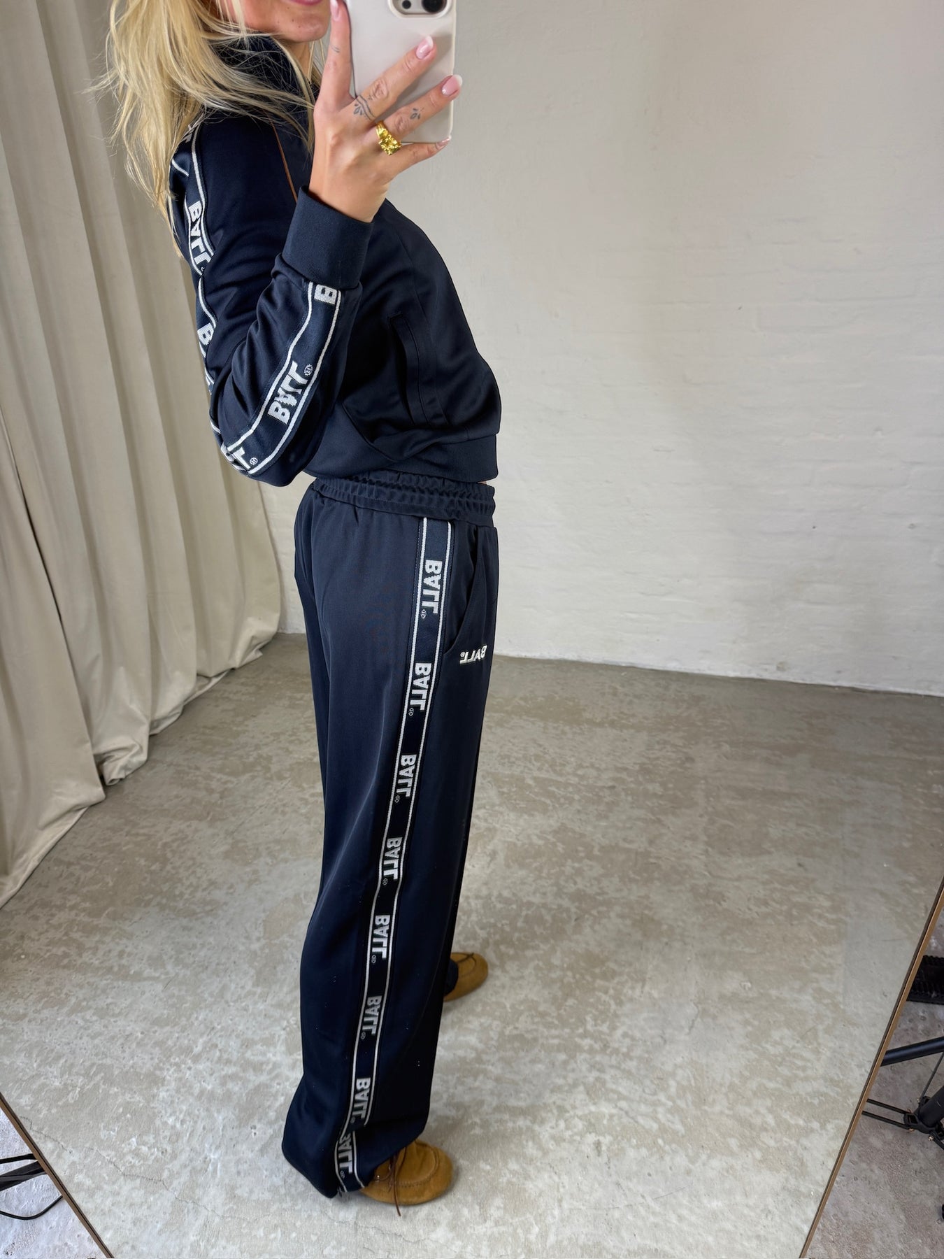 Ball Nicolina Track Pants i blå er sporty og moderne trackbukser med et afslappet, løst snit og klassiske atletiske detaljer. Bukserne er lavet i 100% polyester, har elastik i taljen med bindesnører for en justerbar og komfortabel pasform, sidelommer samt en lynlåslukket baglomme, og de løse ben afsluttes med logo og hvide striber ned langs siderne, der giver et cool, retro‑inspireret look.