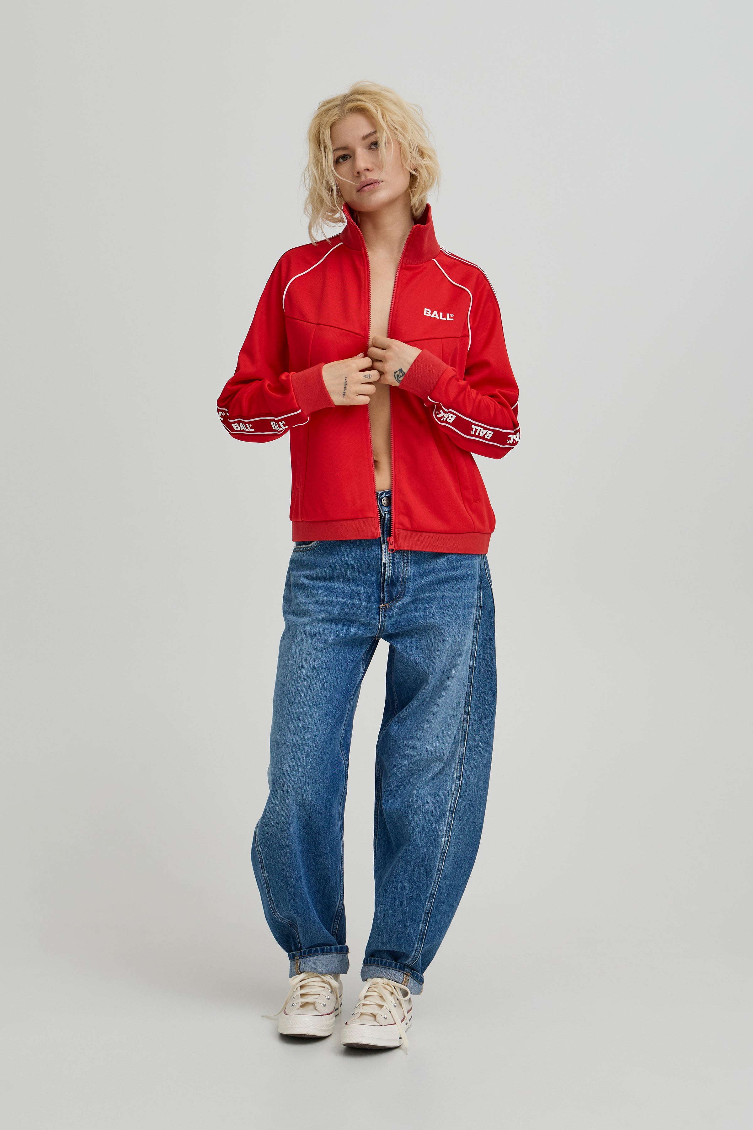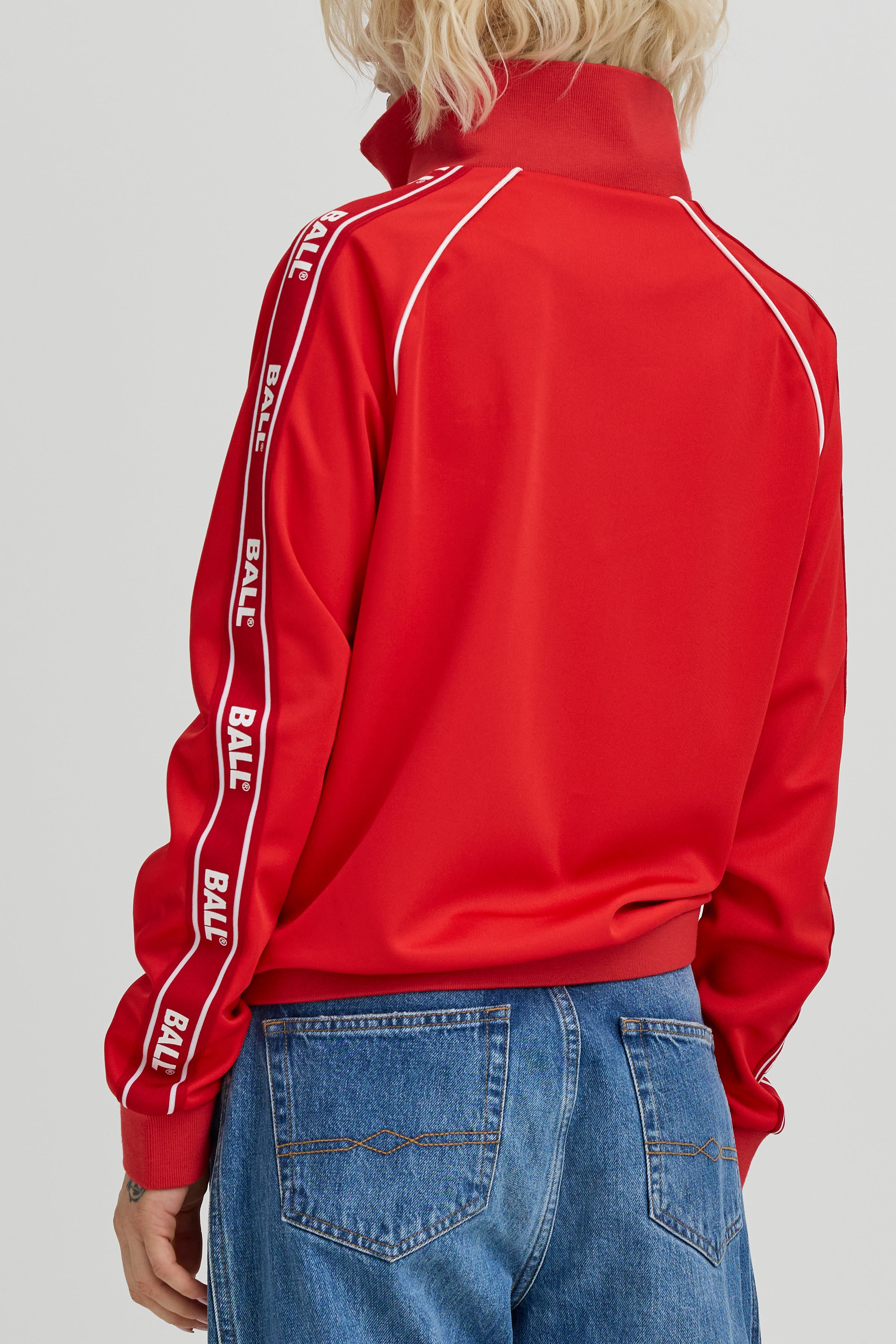 Ball Nicolina Track Jacket kombinerer sporty retro-stil med moderne streetwear. Jakken har høj krave, lynlås og sidelommer, mens kontraststriber på ærmerne og et lille brystlogo giver et klassisk track-look. Fremstillet i let polyester med normal pasform, fås den i farver som Chinese Red og Sky Captain og passer perfekt til både jeans og træningsbukser.