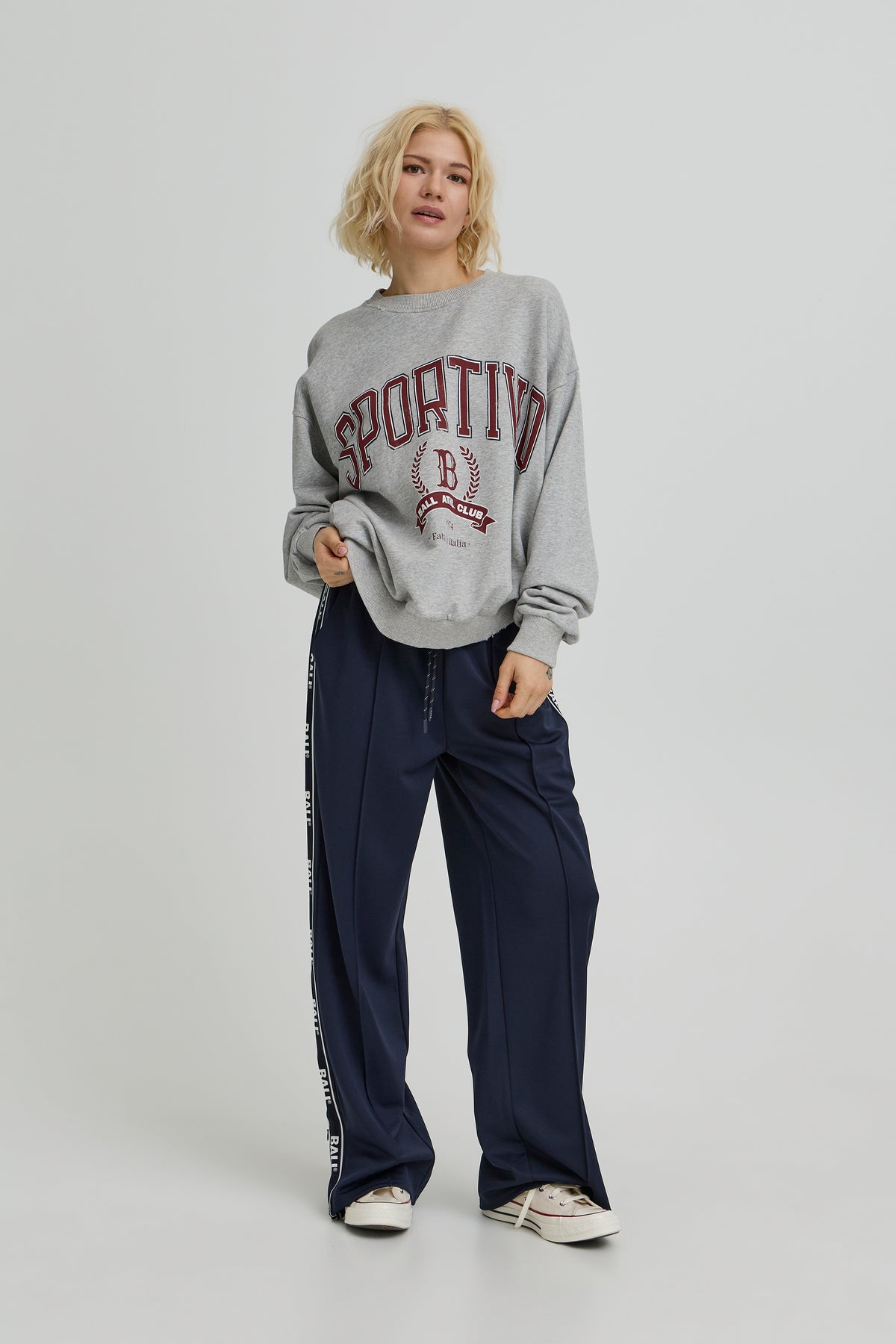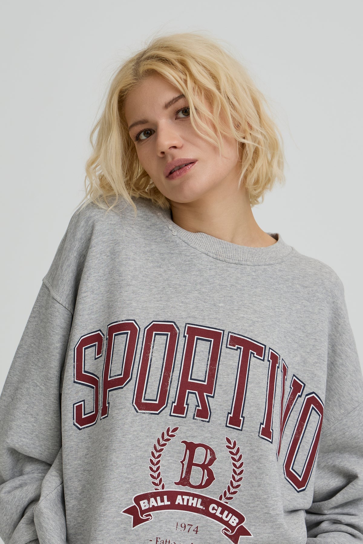 Denne grå melange Sportivo sweatshirt fra Ball kombinerer komfort og stil på en afslappet måde. Trøjen har et mørkerødt print foran, rund hals og lange ærmer, hvilket gør den perfekt til både hverdag og afslapning. Den bløde kvalitet og det casual snit sikrer en lækker og behagelig pasform.