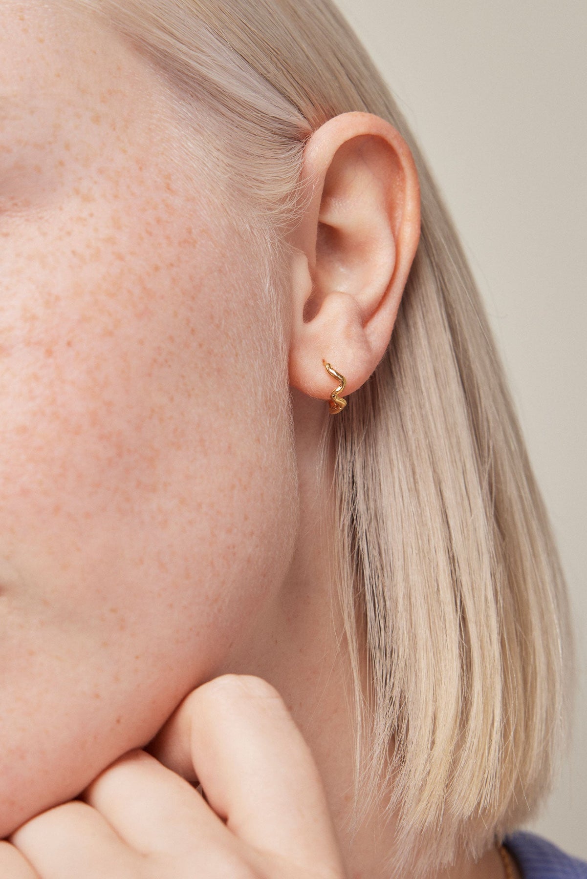 Disse smukke øreringe fra ENAMEL Copenhagen er designet med et moderne og organisk udtryk, der giver et legende, men elegant look. Formen bølger let og skaber et naturligt spil i lyset, som fremhæver den varme glød i den 18 karat guldbelagte overflade.