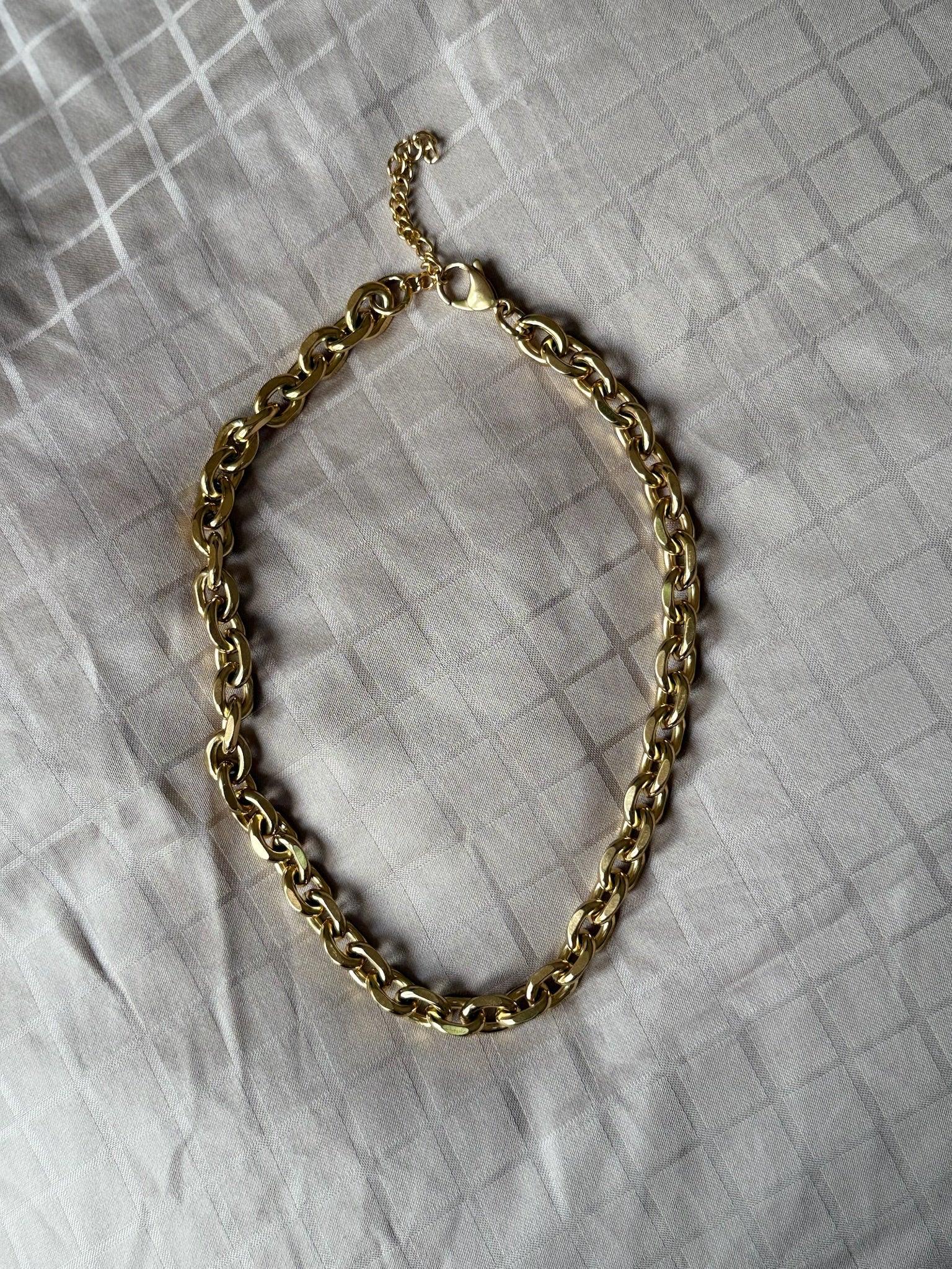 Bred chunky kæde med gylden finish