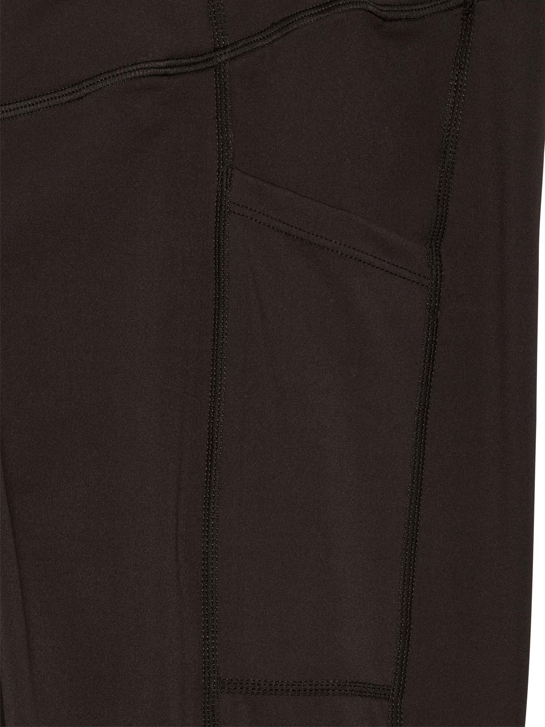 Høj talje med elastisk linning giver god støtte. Praktiske lommer i siden og bag til telefon og småting.