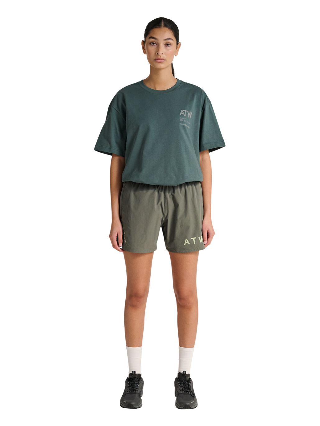 Detaljerne fuldendes med diskret HALO logo-print og et markant ATW-logo, som understreger det funktionelle og sporty look. Denne style er unisex og designet til mænd – kvinder anbefales at vælge en størrelse mindre end normalt.