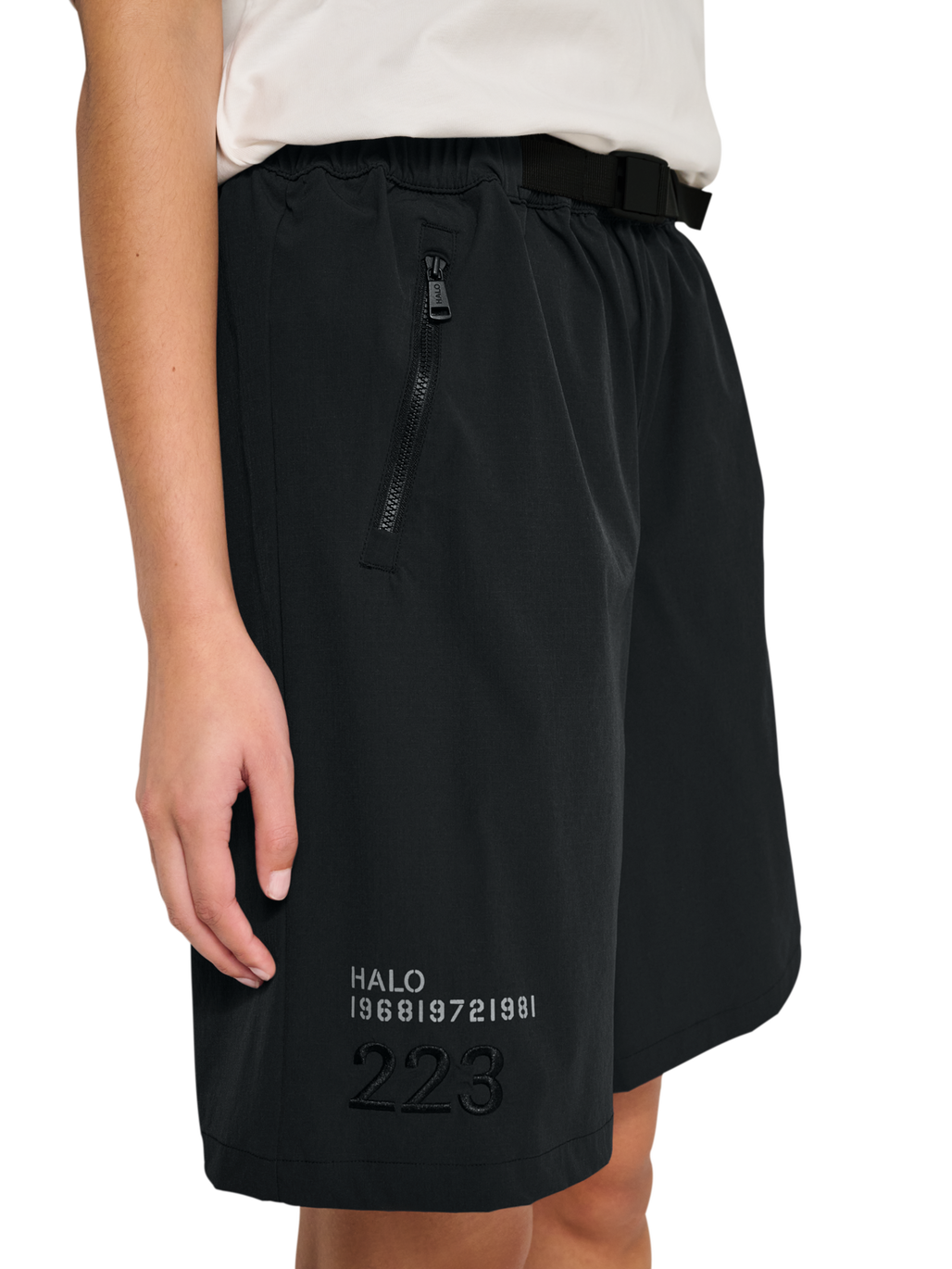 HALO Move Shorts er et par funktionelle, sorte shorts med et rent, teknisk udtryk – lavet til både bevægelse, hverdagsbrug og aktive dage.