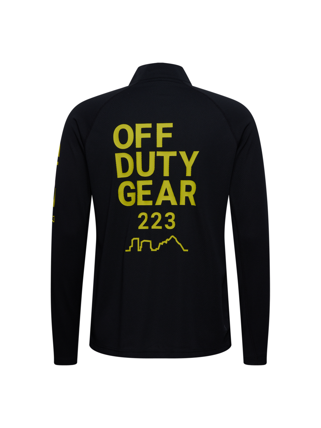 Trøje fremstillet af Sorona® Agile jerseystof, et elastisk og blødt materiale, der bevarer sin oprindelige form i længere tid og samtidig er rynkeresistent. Med half-zip lynlås fortil og høj hals samt lange raglanærmer. Komplet med reflekterende print fortil.