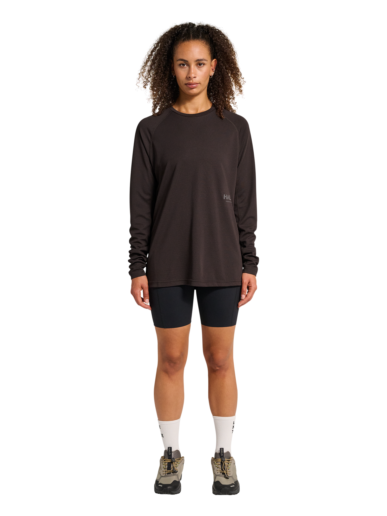 HALO SORONA LS er fremstillet i Sorona®-jersey, et teknisk materiale med høj elasticitet, der holder formen og modstår krøl. Designet har et reflekterende HALO logo-print og 2-vejs stræk for optimal bevægelighed.