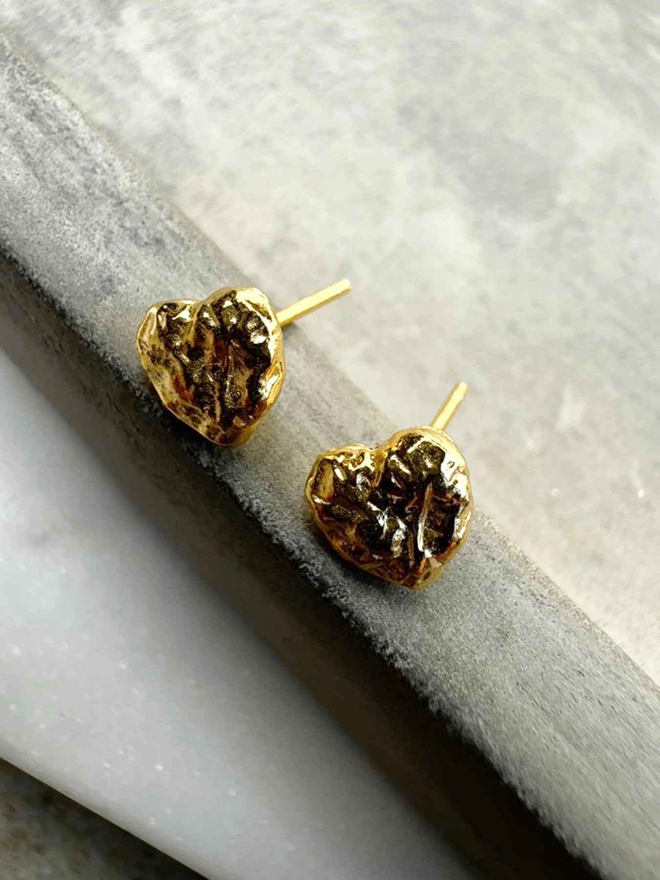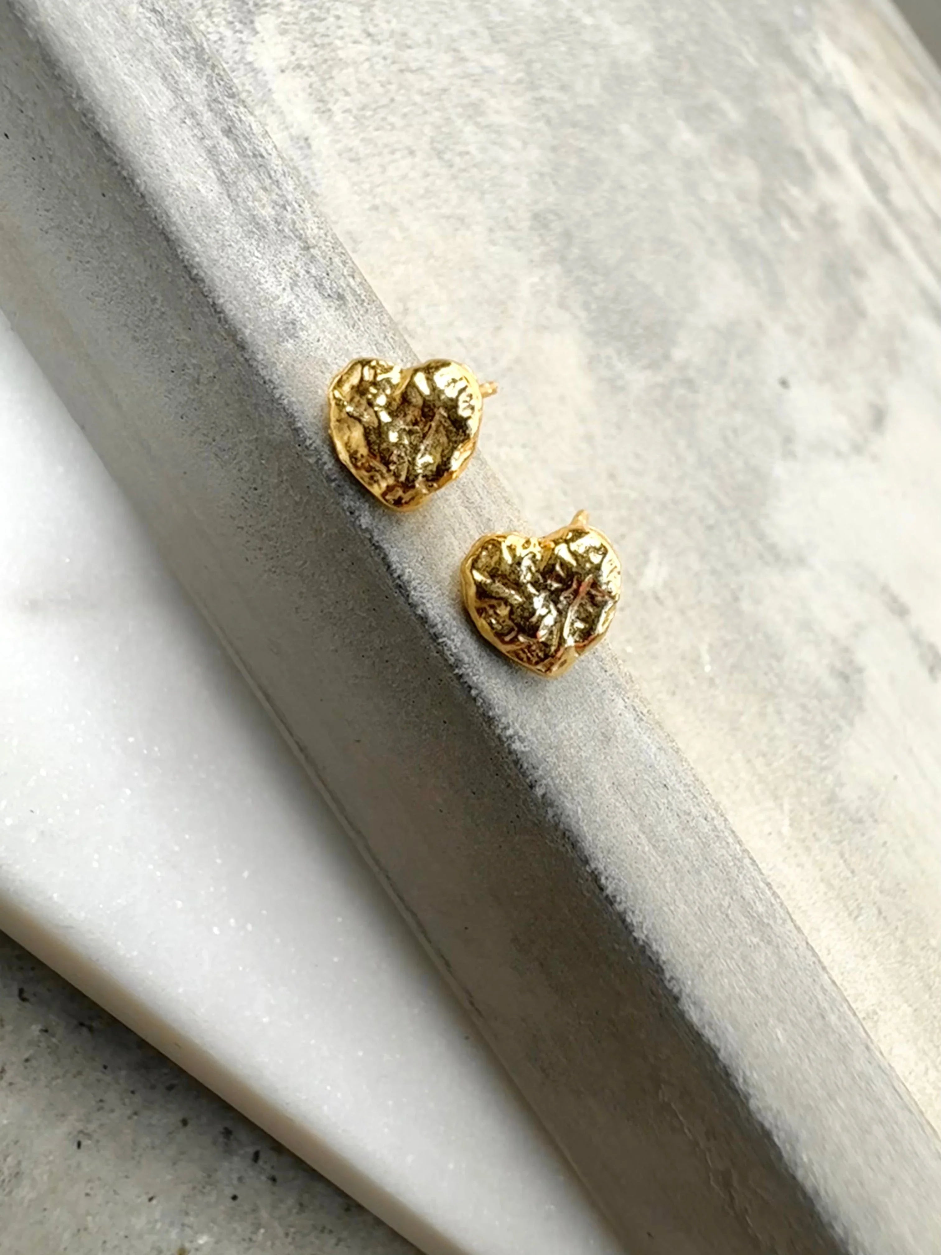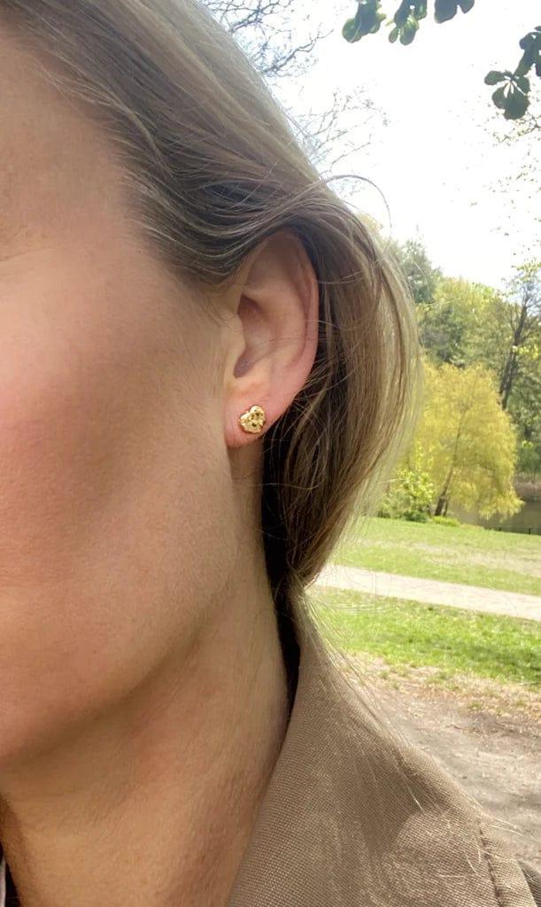 Disse små ørestikker fra Andcopenhagen har en karakteristisk hjerteform med struktureret overflade, der fanger lyset på en særlig måde. Den kompakte størrelse på 5 mm gør dem behagelige at bære hele dagen.