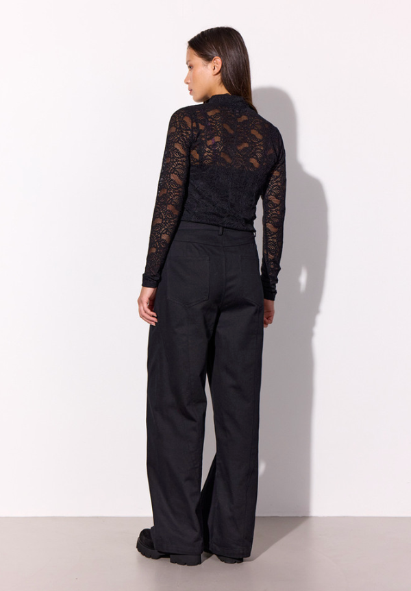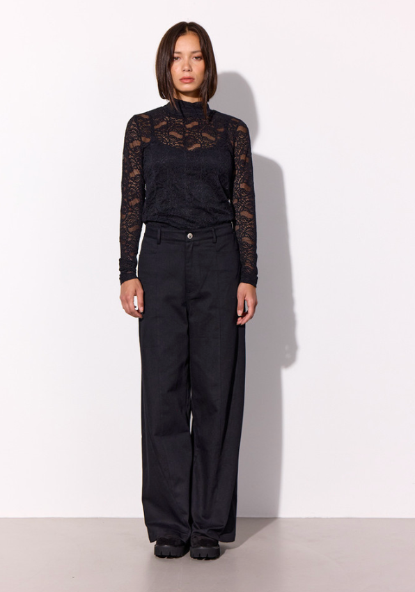 Hunkøn Perry Bluse er en blød og strækbar blondebluse med tætsiddende pasform.