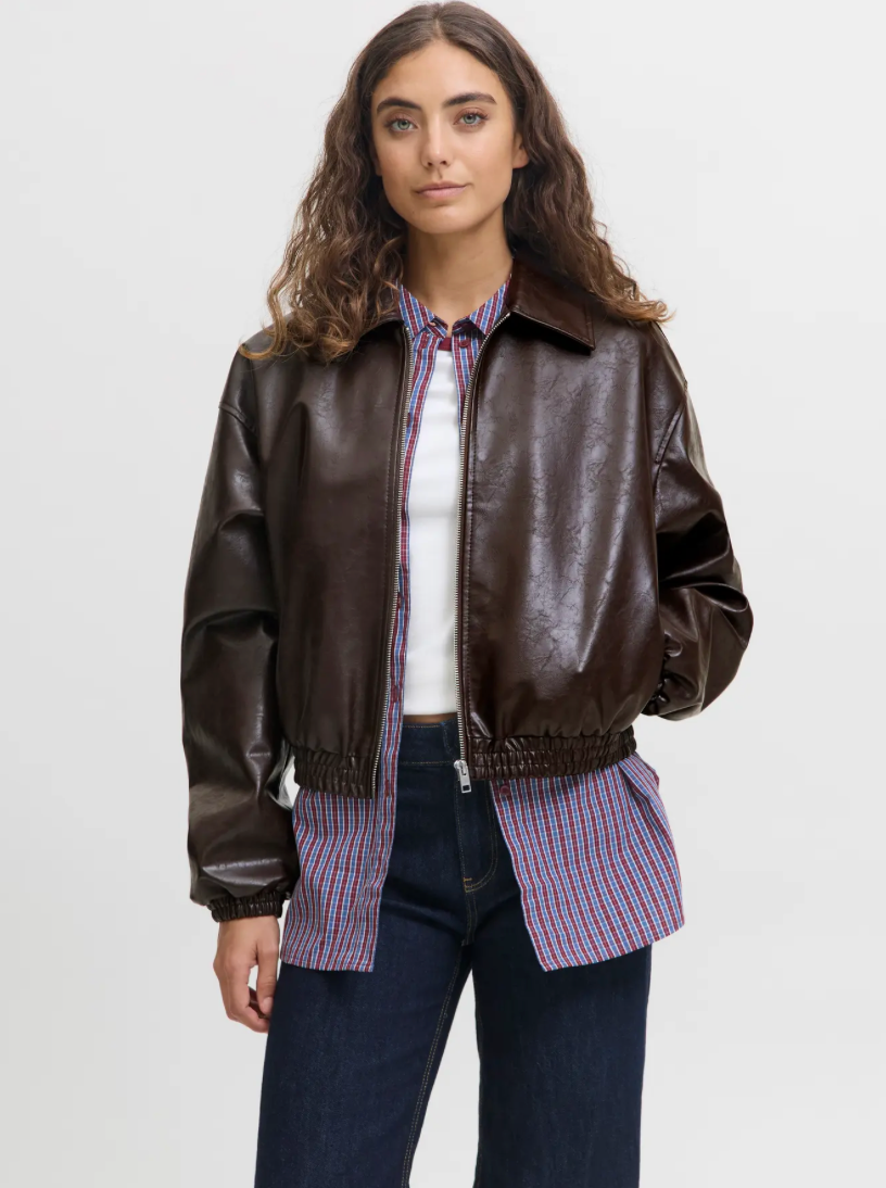 Cool bomber jakke. Jakken fra JJXX er i en dyb brun farve som er perfekt til efteråret. Jakken lukkes med lynlås og har lommer i siden.