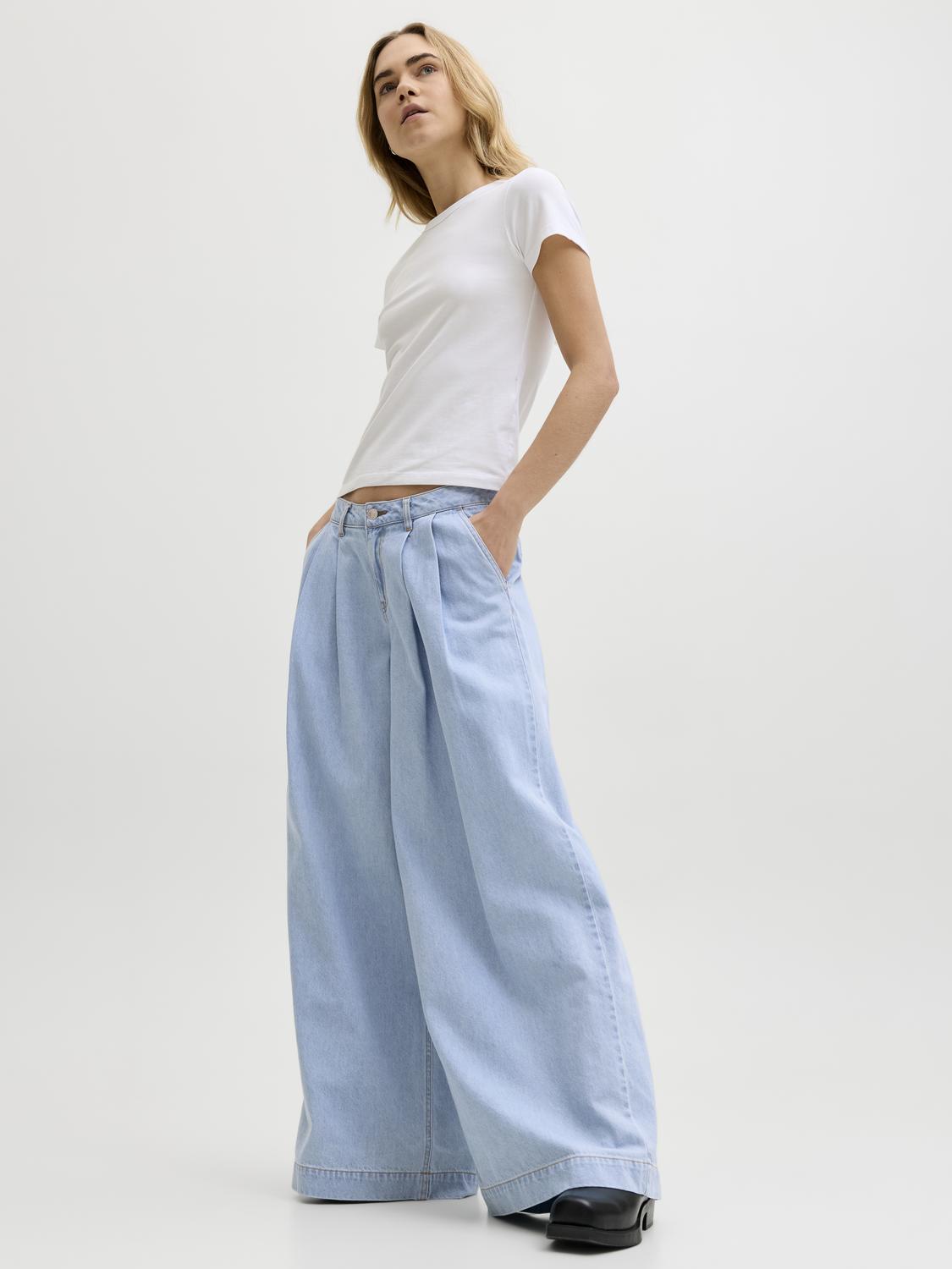 Disse jeans fra JJXX i ekstra vid pasform kombinerer komfort og moderne stil med en afslappet midt-talje og lynlås. Den lyse vask giver et frisk og lysnet denimlook, som passer perfekt til at give din garderobe et unikt præg. Fremstillet i slidstærkt denimvæv med en blanding af 95% bomuld og 5% genanvendt bomuld, der sikrer både holdbarhed og bæredygtighed.