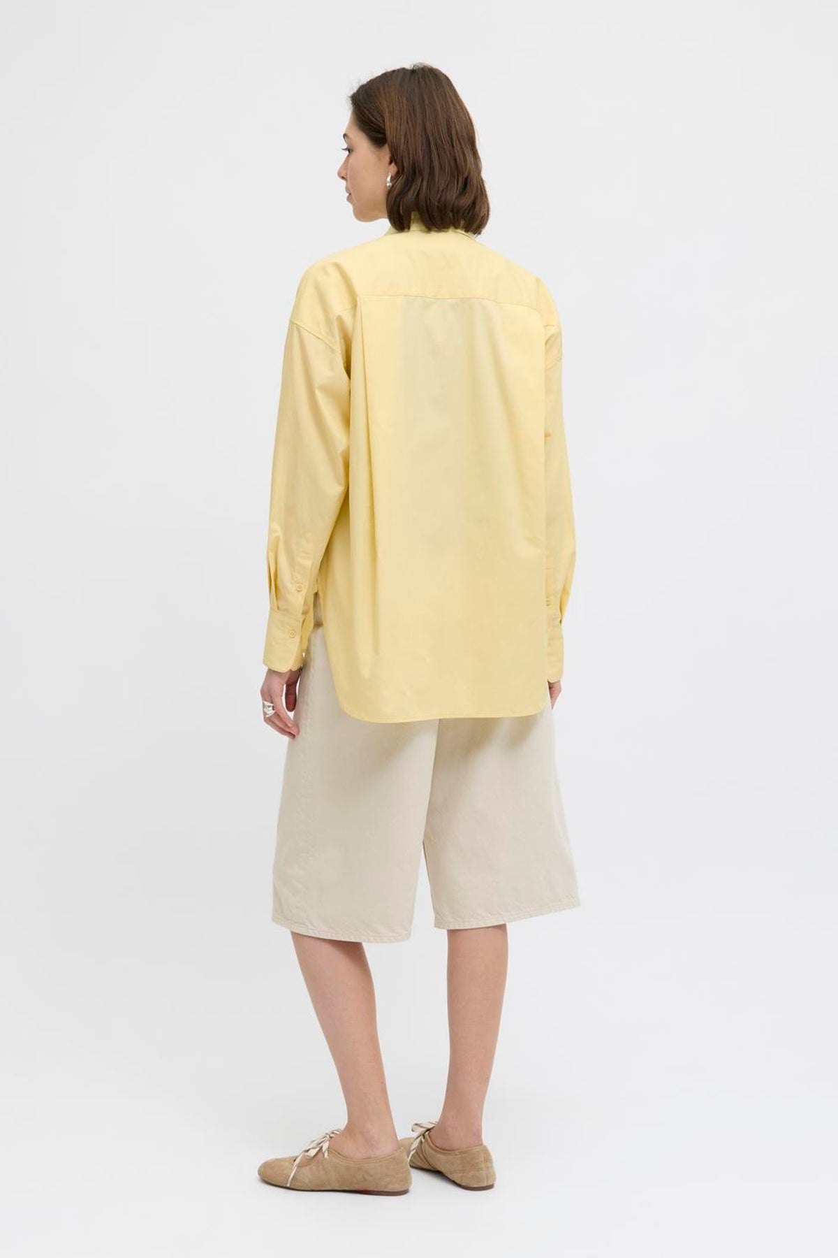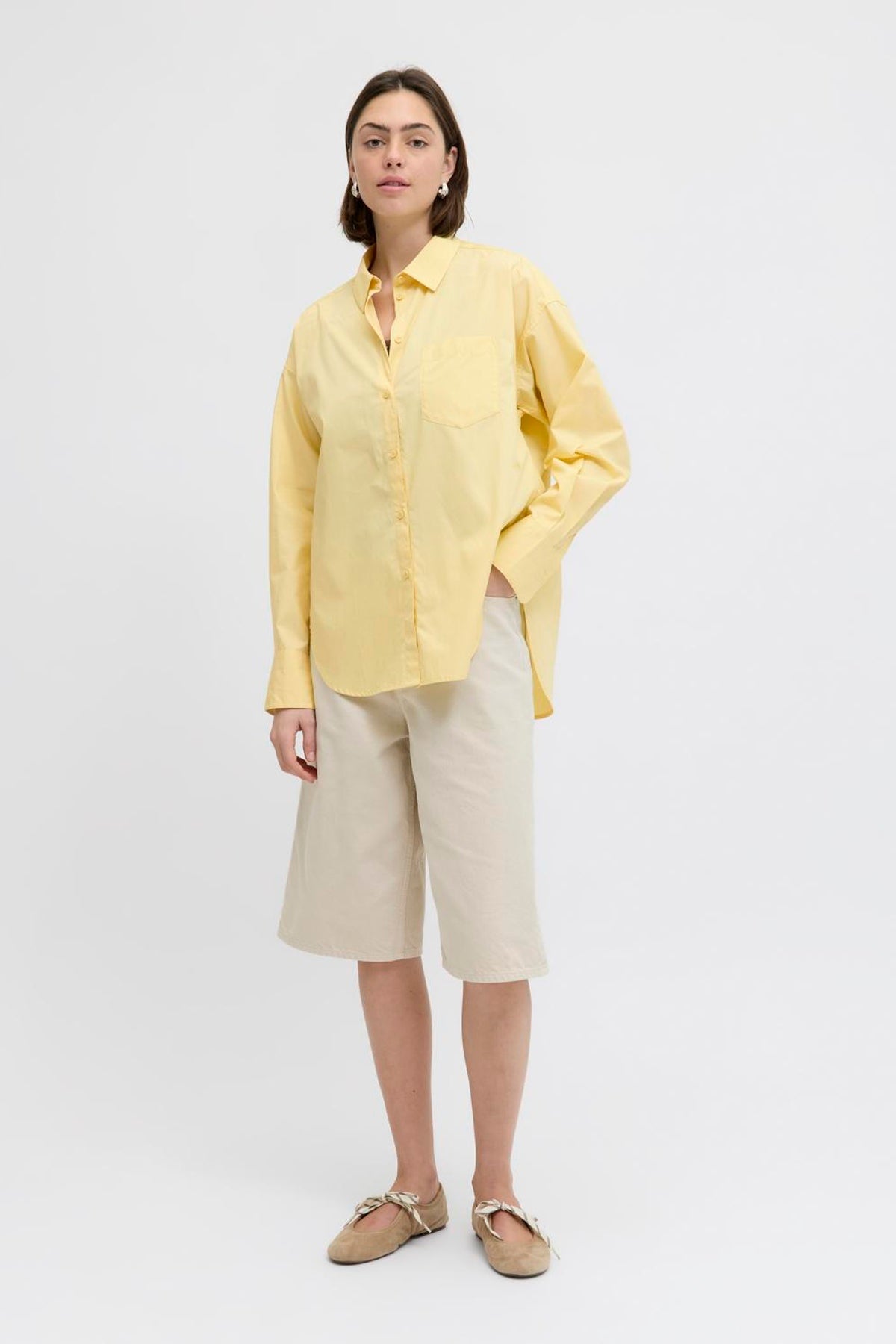 Skjorten har et afslappet og boxy fit med lange ærmer og et klassisk skjortekrave design. Den er lavet af 100% økologisk bomuld, som sikrer en blød og åndbar oplevelse. Skjorten er længere bagpå og har sideslidser, hvilket giver et moderne twist til det traditionelle look. Den lukkes med knapper og har knapmanchetter samt en brystlomme.