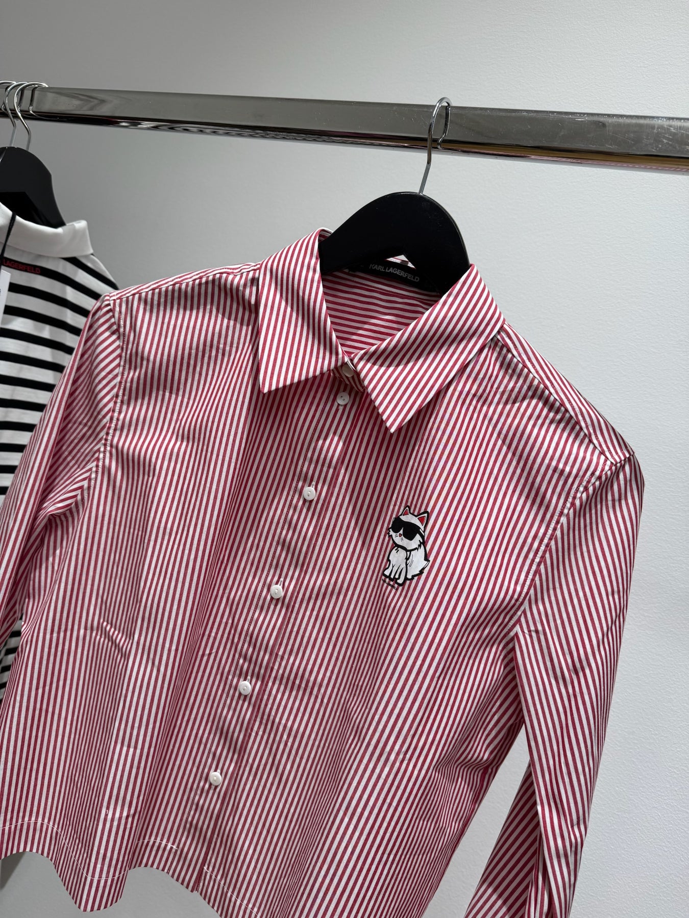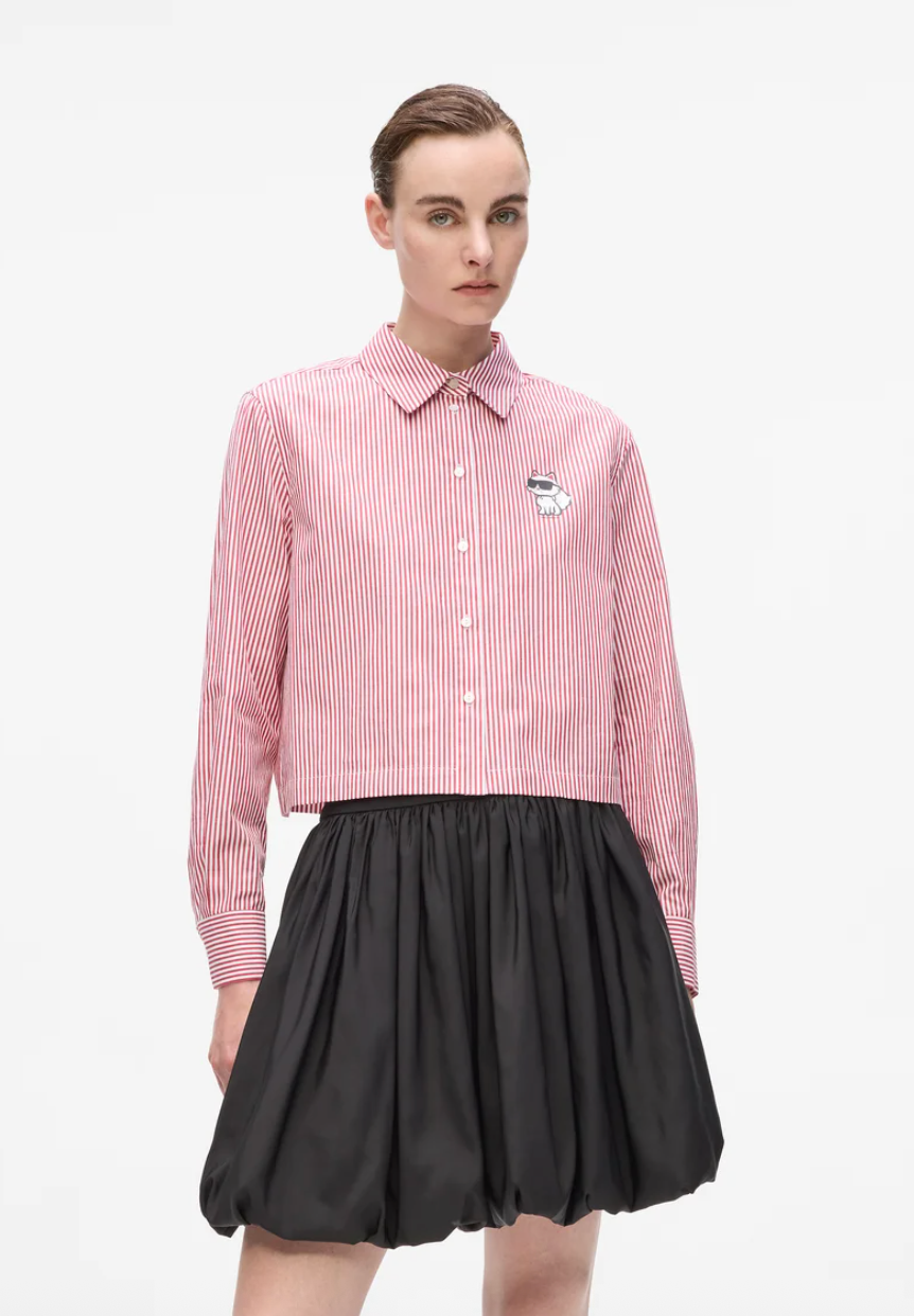 Fin stribet cropped skjorte fra Karl Lagerfeld. Skjorten har en klassisk krave og Karls logo på den ene side.