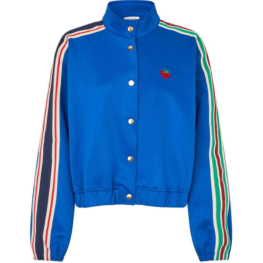Brooklynn er en sporty nyhed fra Lollys Laundry, designet i en klar blå farve, der giver jakken et friskt og moderne udtryk. De farvede striber langs ærmerne tilfører et dynamisk, sporty look, mens det lille jordbærbroderi på brystet giver et genkendeligt Lollys-touch.