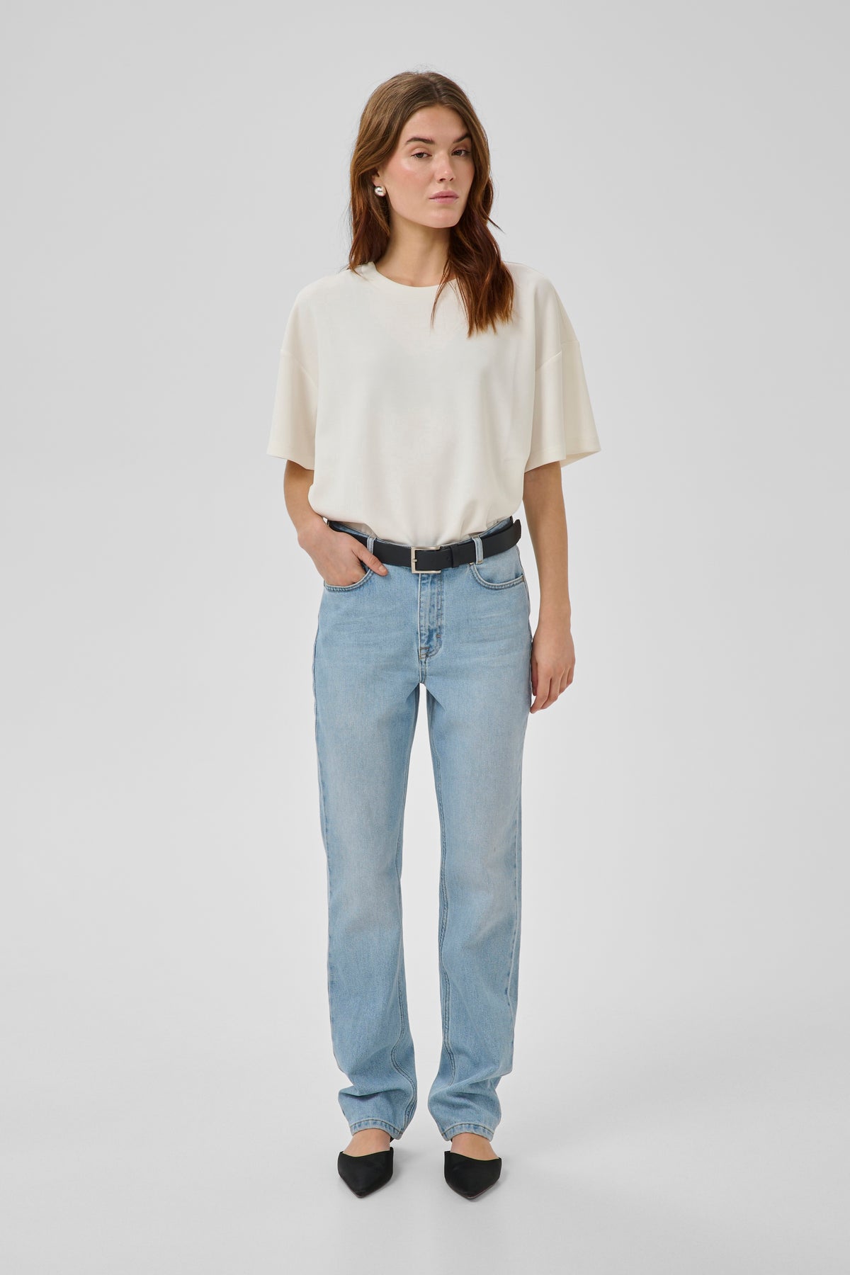 Jeansene er designet med klassiske fem lommer, bæltestropper samt lynlås- og knaplukning. Materialet føles behageligt og giver en flatterende pasform, der sidder pænt uden at stramme. The Isa jeans er et sikkert valg i basisgarderoben og kan styles med alt fra en enkel t-shirt og sneakers til en skjorte og loafers.