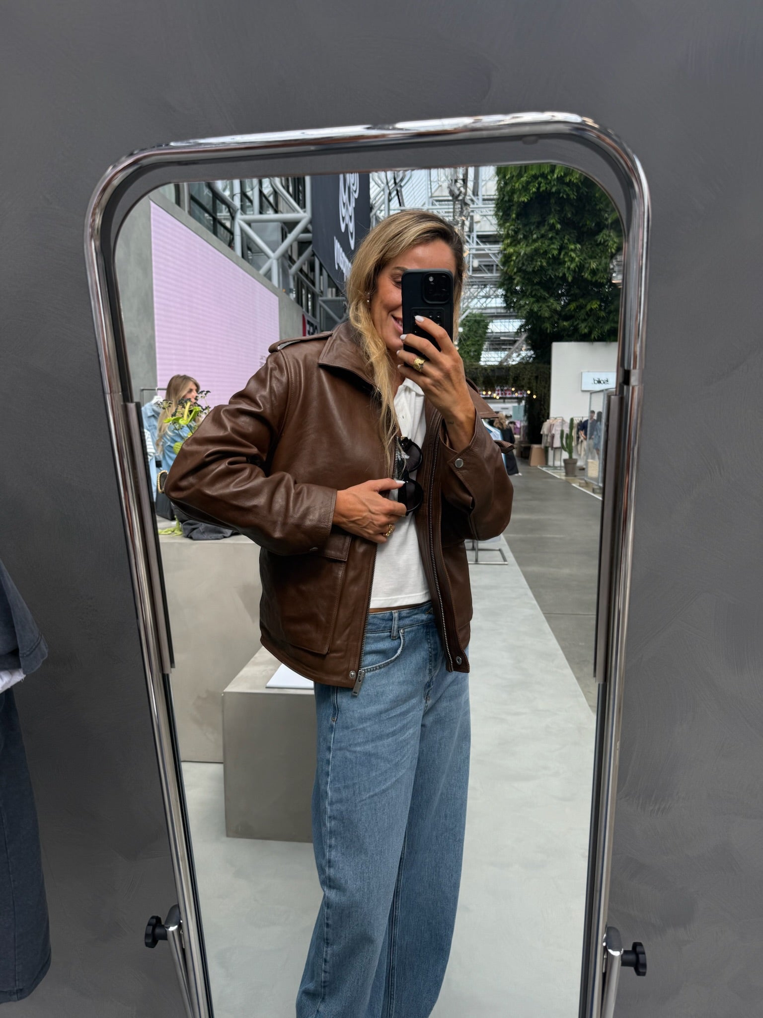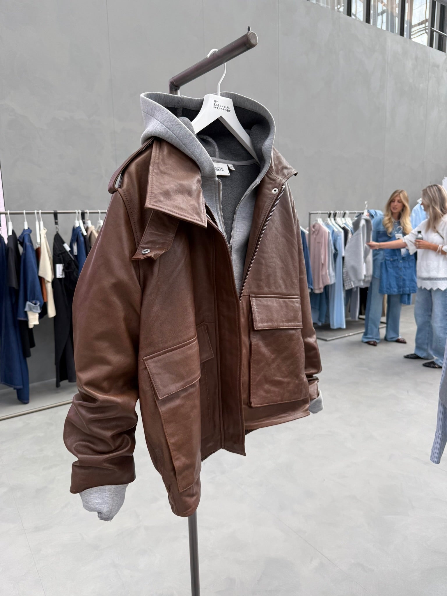 En statement-læderjakke, der kombinerer klassisk kvalitet med et moderne, urbant udtryk.