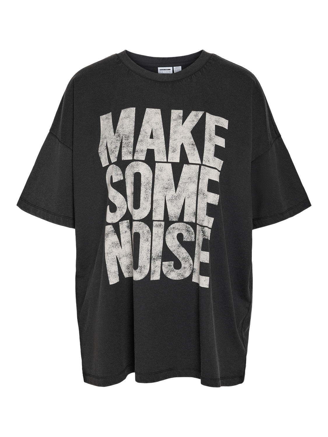 En oversized t-shirt fra Noisy May med rund hals og korte ærmer, der falder naturligt med en dropped shoulders pasform. Denne t-shirt er lavet af 100% økologisk bomuld, som sikrer en blød og åndbar kvalitet. Printet på fronten tilføjer et statement til det enkle look, og den sorte farve gør den nem at style.