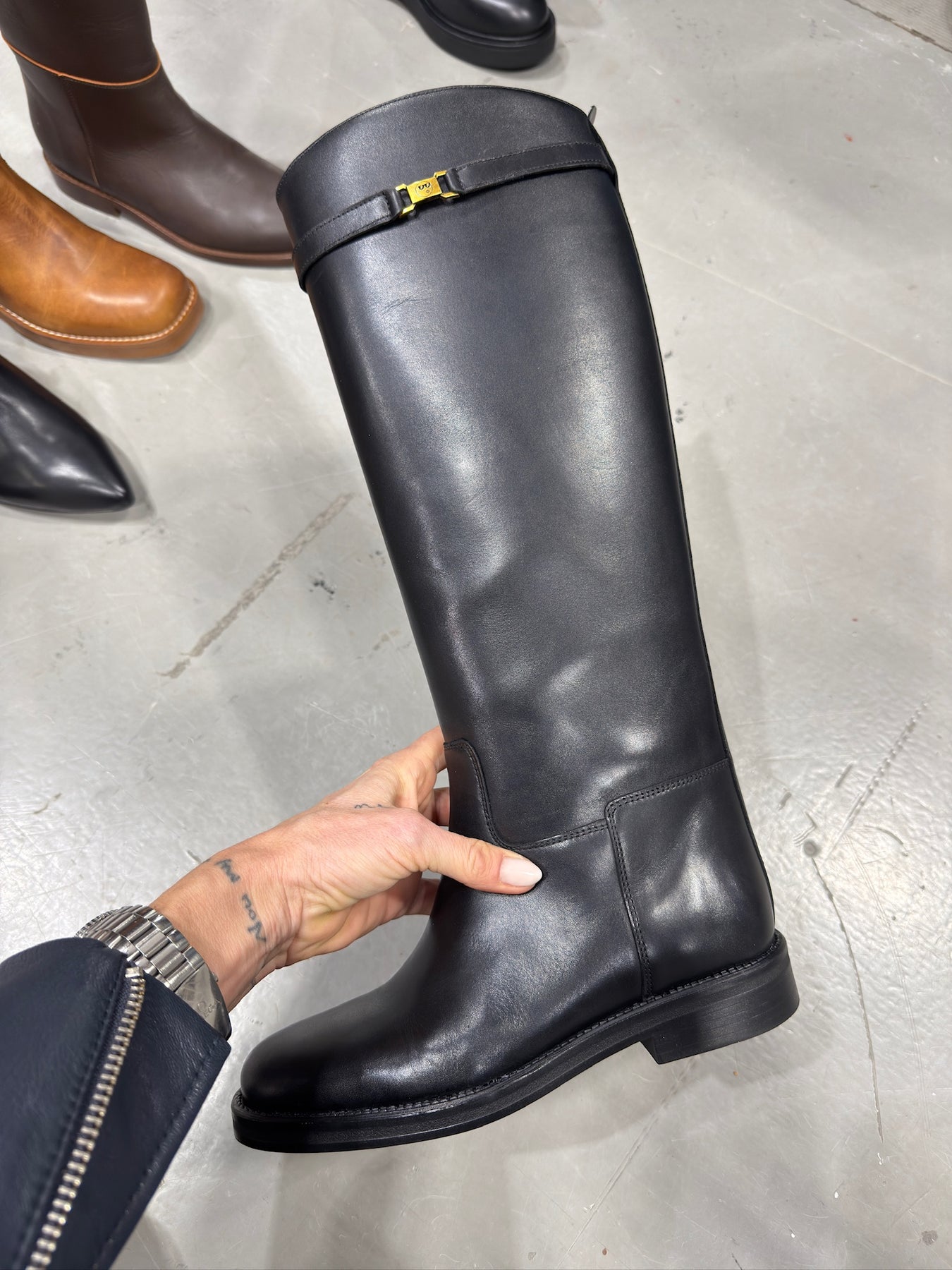 Med EQUESTRA LONG fra Phenumb, får du en støvle, hvor fashion og disciplin går hånd i hånd. Silhuetten er inspireret af klassiske equestrian-linjer, men opdateret med moderne minimalisme og et diskret guldspænde, der tilfører et eksklusivt touch. Den aftagelige strop med spænde giver dig mulighed for at variere udtrykket, alt efter om du ønsker et mere clean look eller et statement-præget finish.