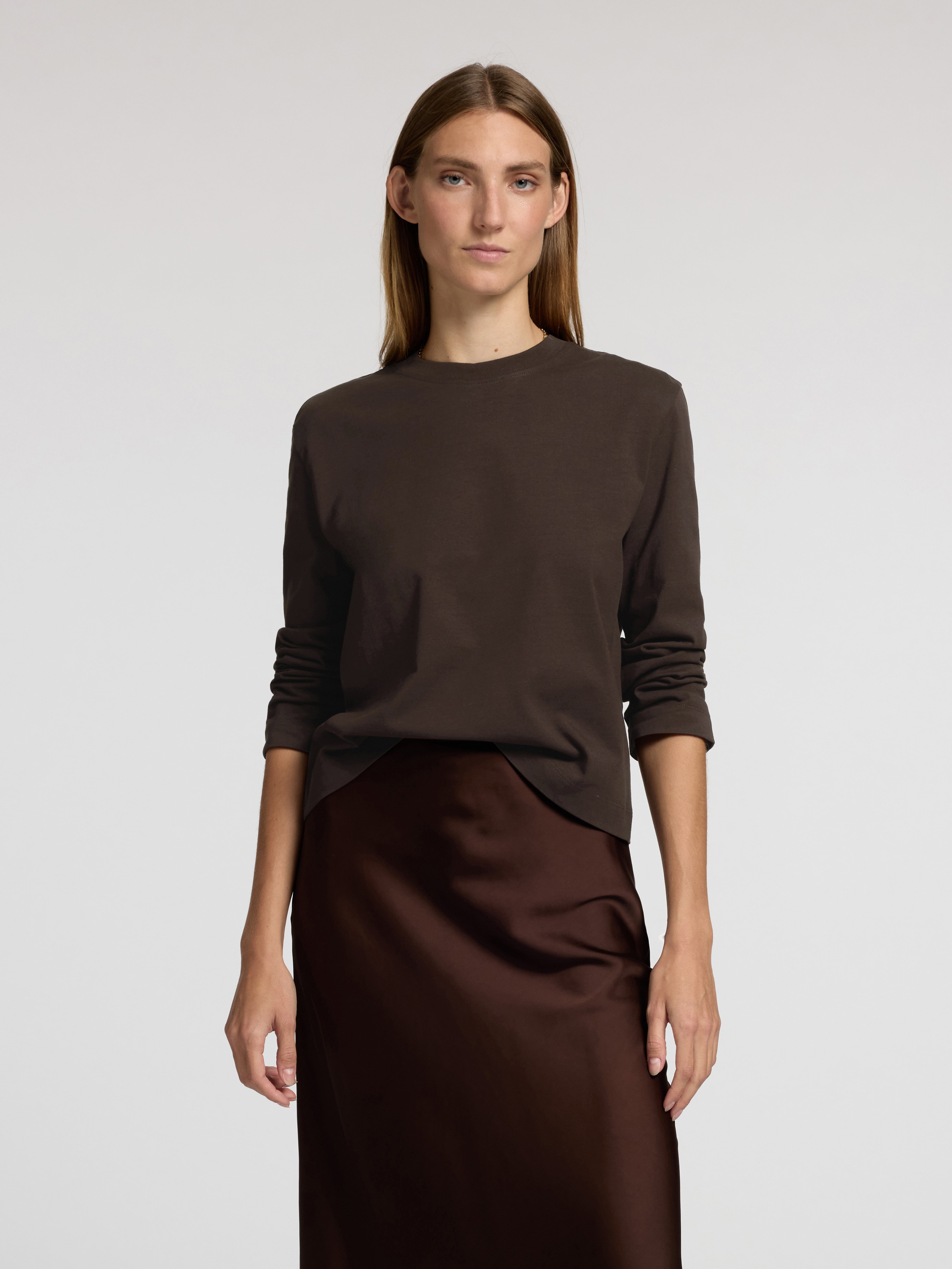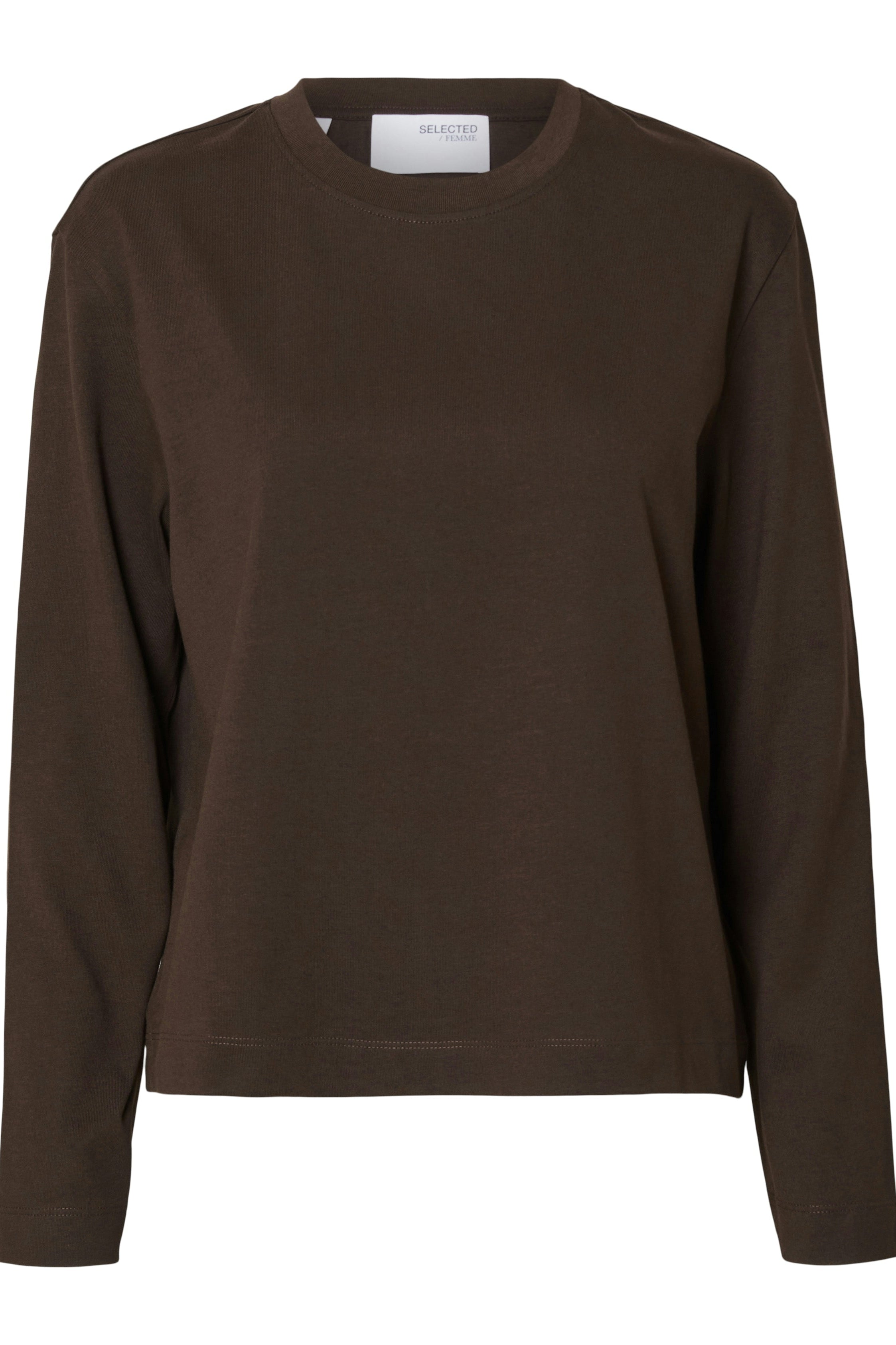 Klassisk brun bluse fra Selected Femme med moderne boxy pasform.