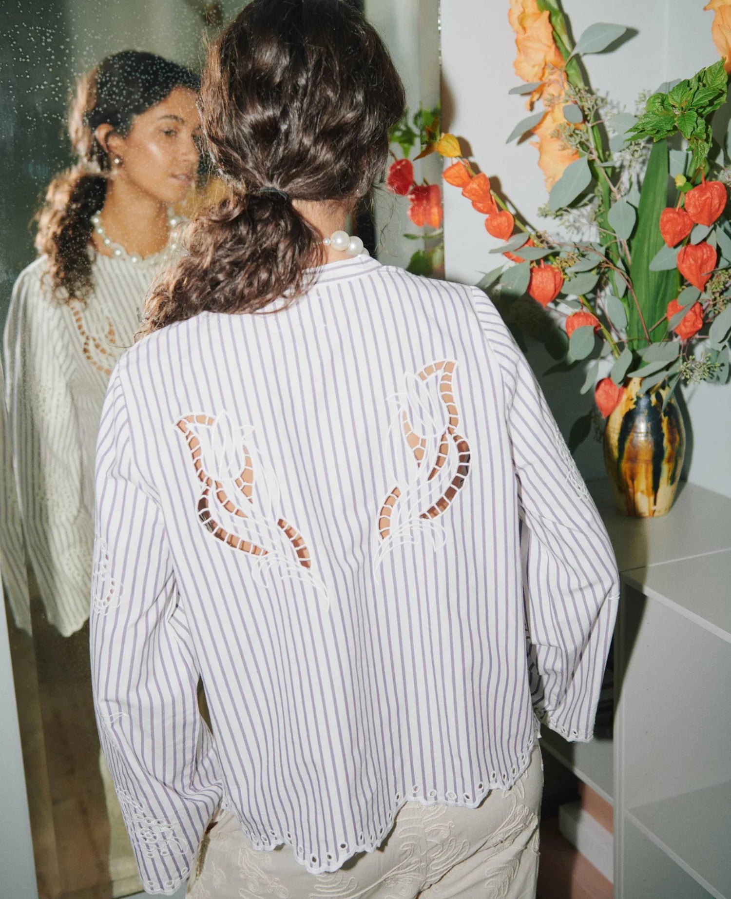 Cecilie Shirt fra SISSEL EDELBO er en feminin og afslappet skjorte med et unikt, håndværkspræget udtryk. Skjorten er fremstillet af leftover cotton med yarn-dyed stripes og har en relaxed fit, der giver et let og ubesværet look.