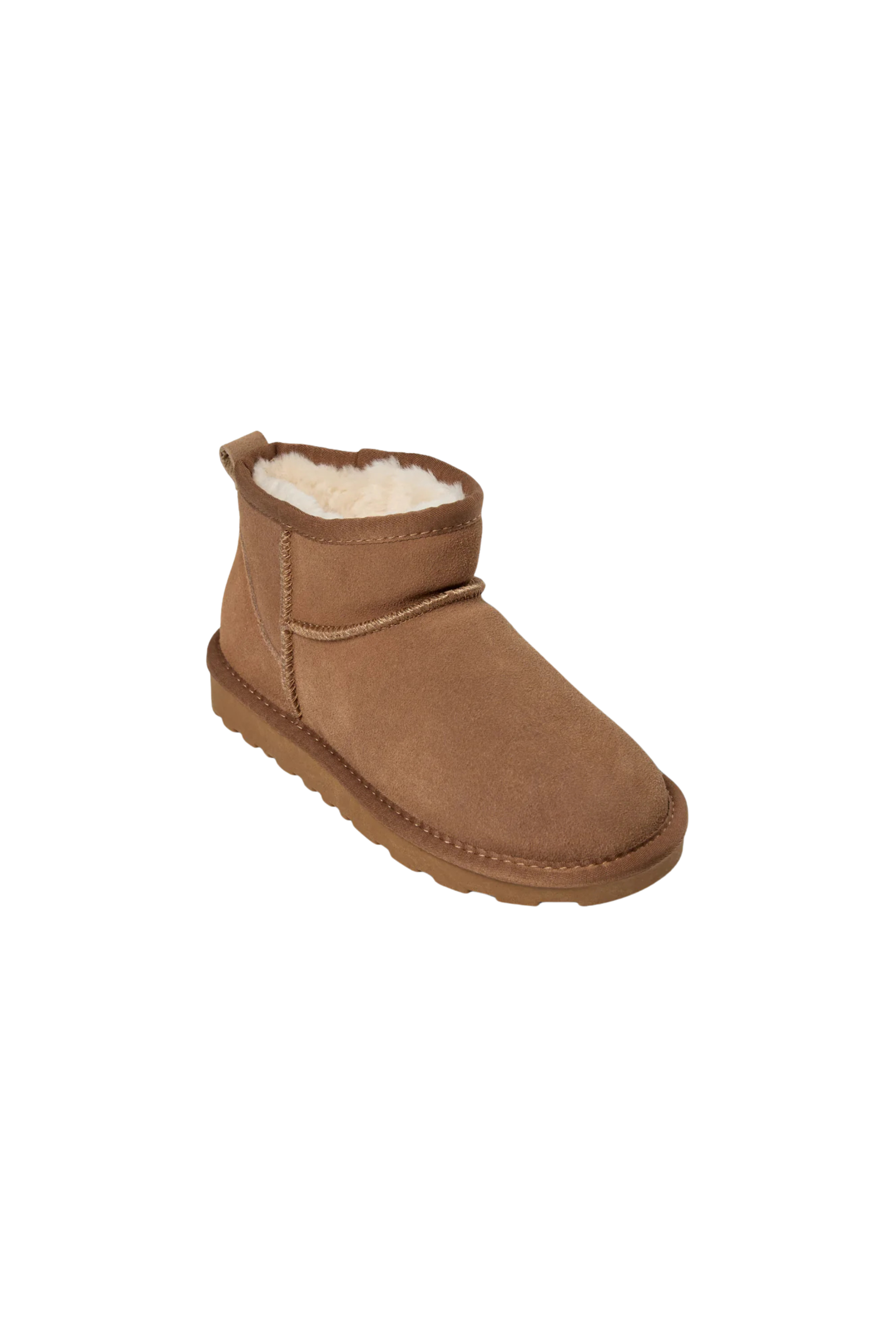 Disse bamsestøvler fra Sofie Schnoor kombinerer et blødt ruskindslook med en varm og indbydende inderside, som gør dem oplagte til kolde dage. Den korte, kompakte silhuet giver et moderne udtryk, mens den naturlige tan-farve gør støvlerne nemme at style til vinterens garderobe.