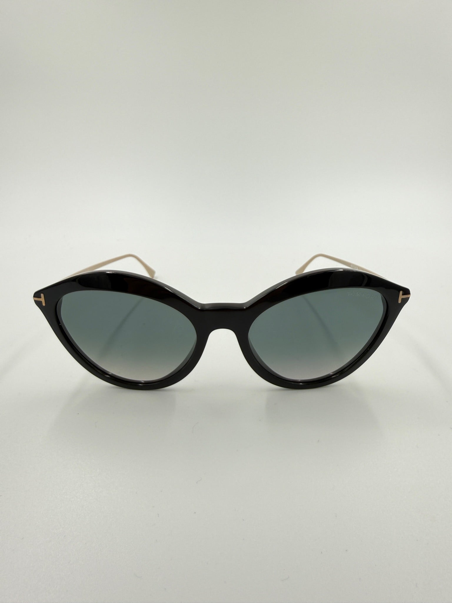 Eksklusive Tom Ford Donna solbriller i et sofistikeret cat-eye design, der kombinerer klassisk elegance med moderne luksus. Stellet er udført i blank sort acetat med diskrete guldfarvede detaljer ved hængslerne, som giver et eksklusivt og stilrent udtryk.